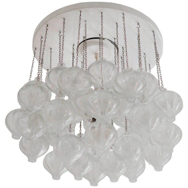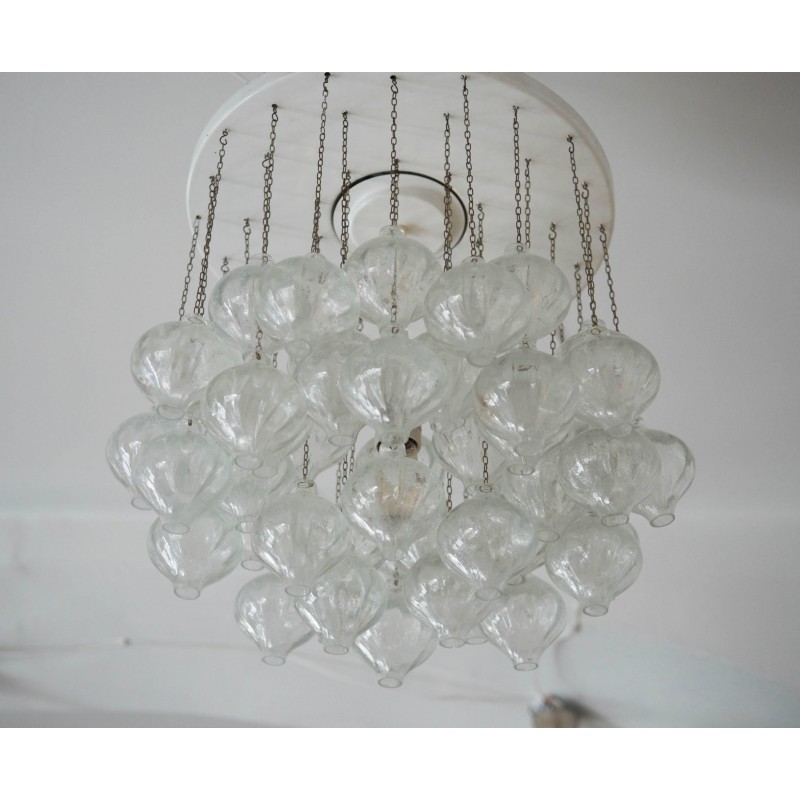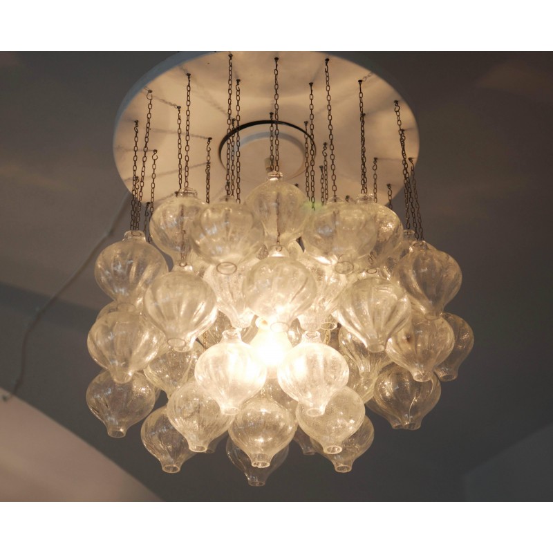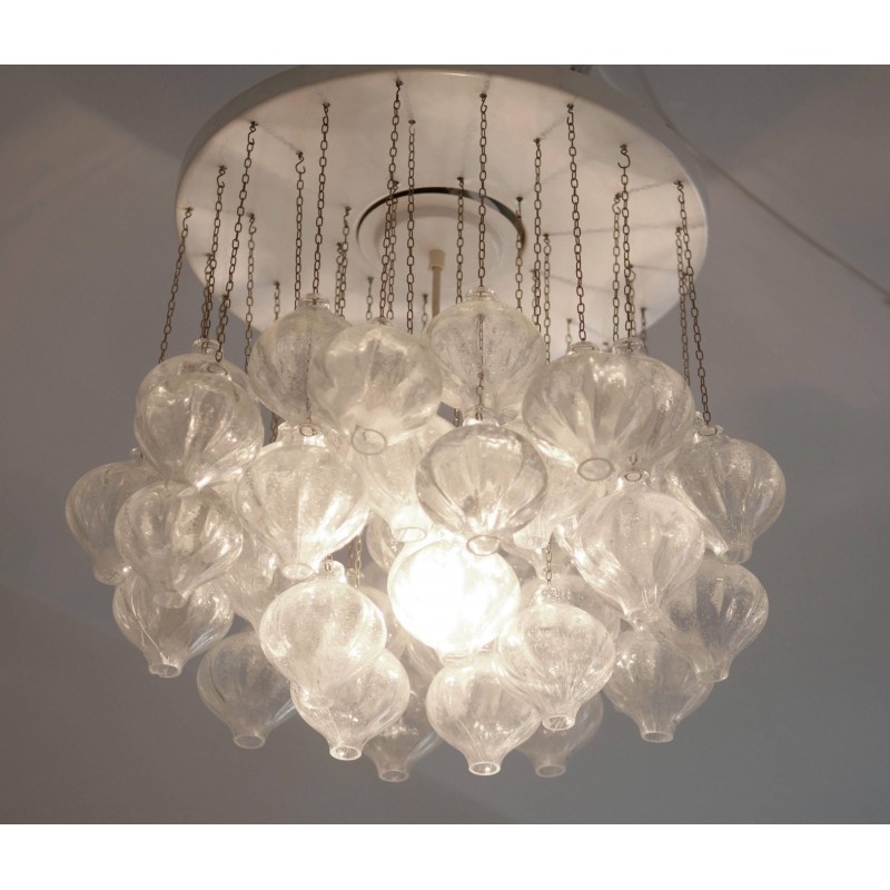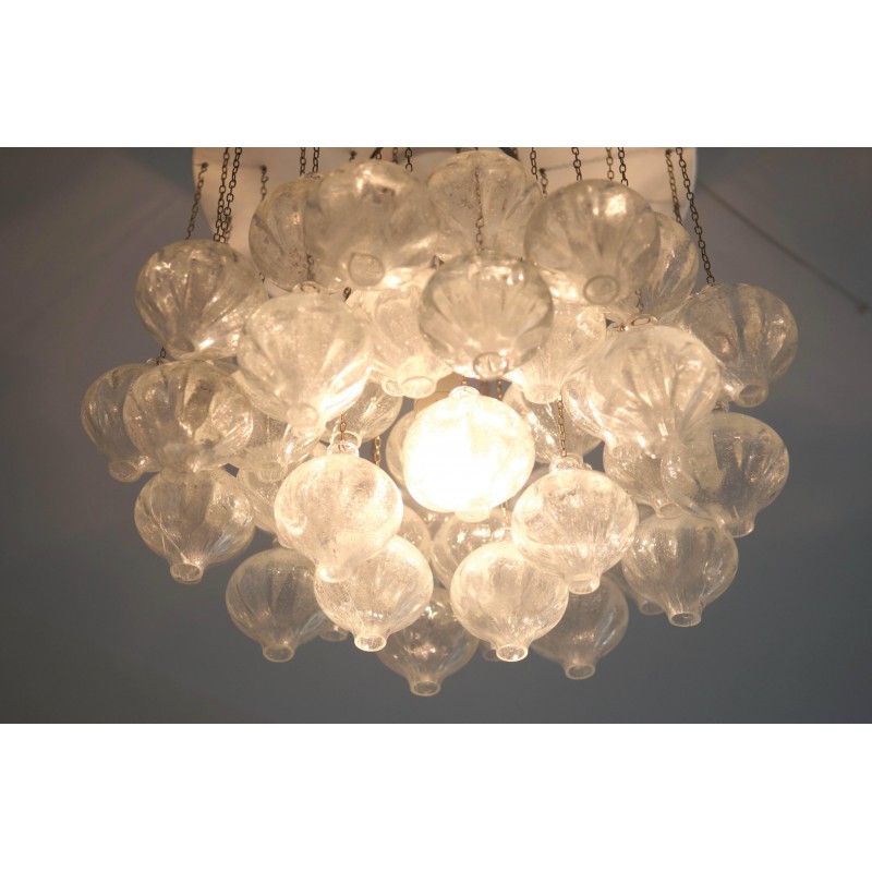 Chandelier fitted with one E27 bulb and 50 handblown glass elements made by J.T. Kalmar.
