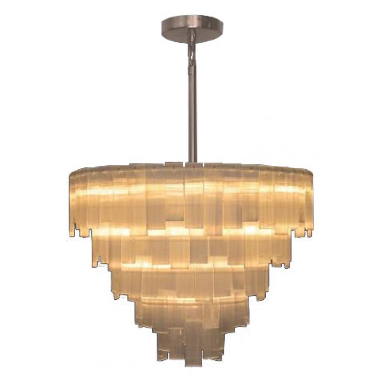 Original One of a Kind Design Chandelier. No two alike, each chandelier in this design is a one of a kind. This hanging light looks interesting from any angle, and makes nice shadows. One of the technically most particular chandeliers created. We approach this sculptural object in a contemporary, unexpected and creative way. Light and shadow interplay and exist together, there is a subtlety of using both to manipulate space and thought.