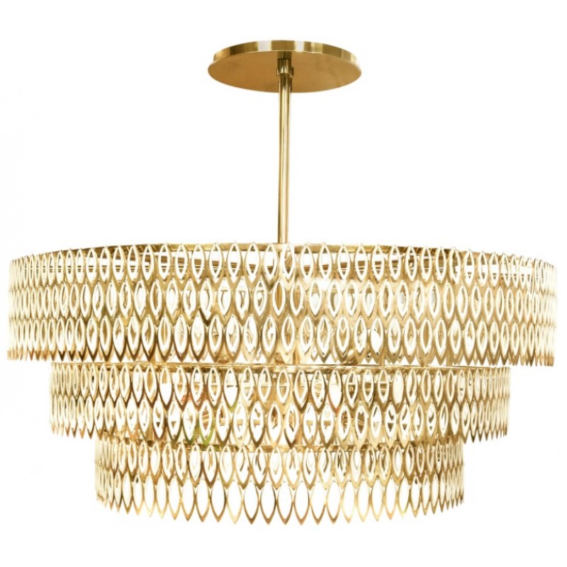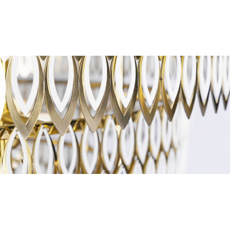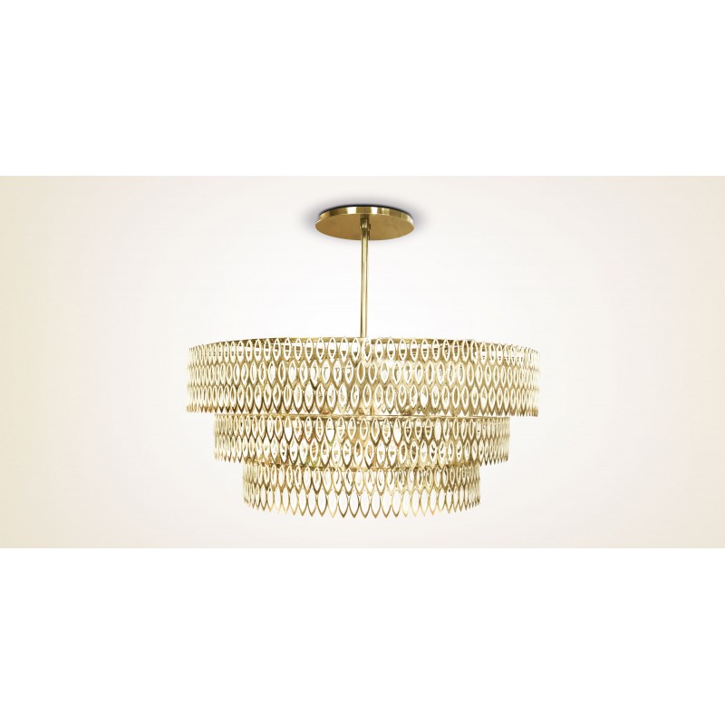 Petal is a modern chandelier that brings to any interior design set a luxurious presence. Its three imposing tiers of petal-shaped brass rings, finished with a rhythmic combination of lacquered stainless steel with a brass varnish finish, reflects the Petal modern chandelier classic inspiration. This contemporary lighting piece represents a creative and elegant way of bringing floral and organic sensations into your contemporary living space.