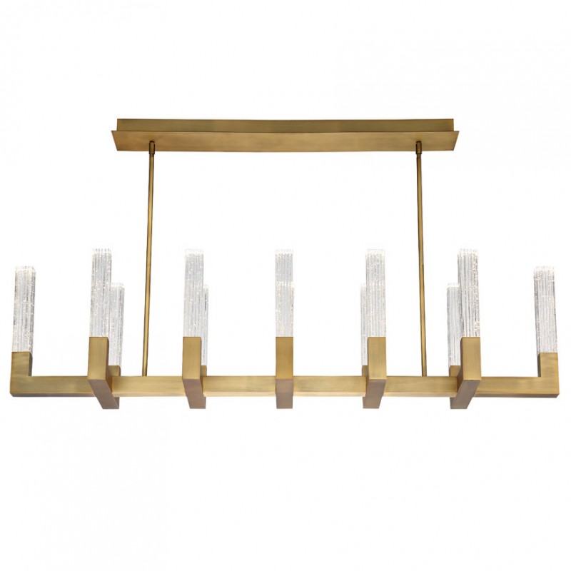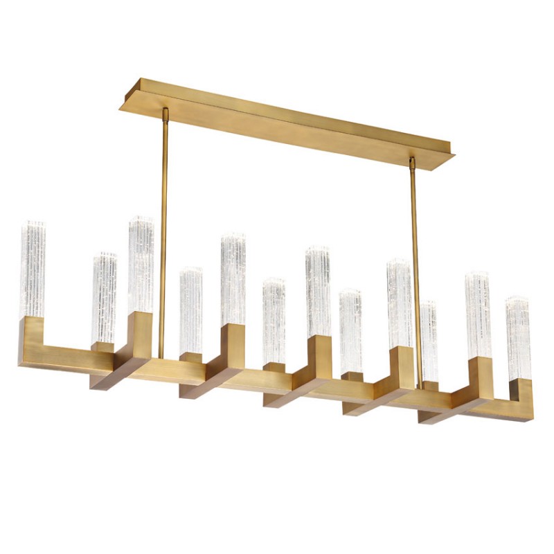 In a luxe Aged Brass or Black finish, the Cinema Linear Chandelier makes a modern statement while seeded Crystal adds understated glamour. The Cinema creates a matching lighting environment that can pull multiple rooms together. Damp location rated. ETL and Title 24 listed.