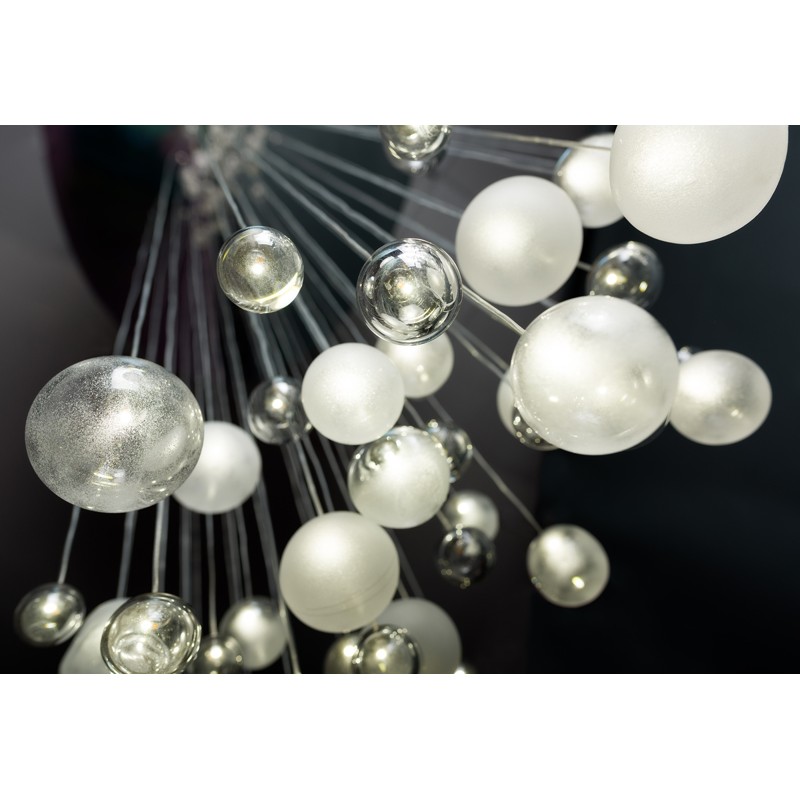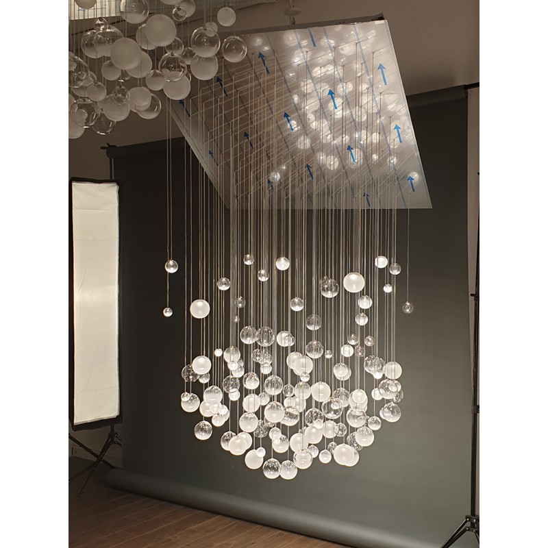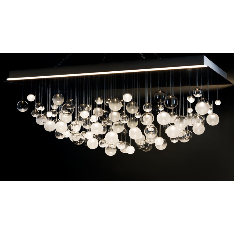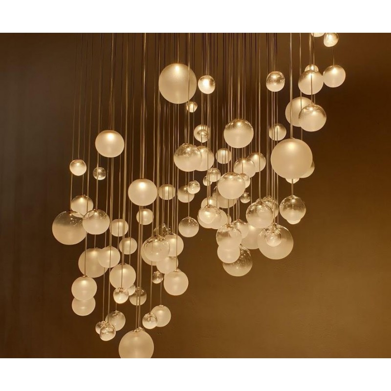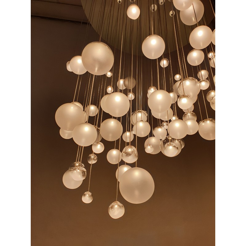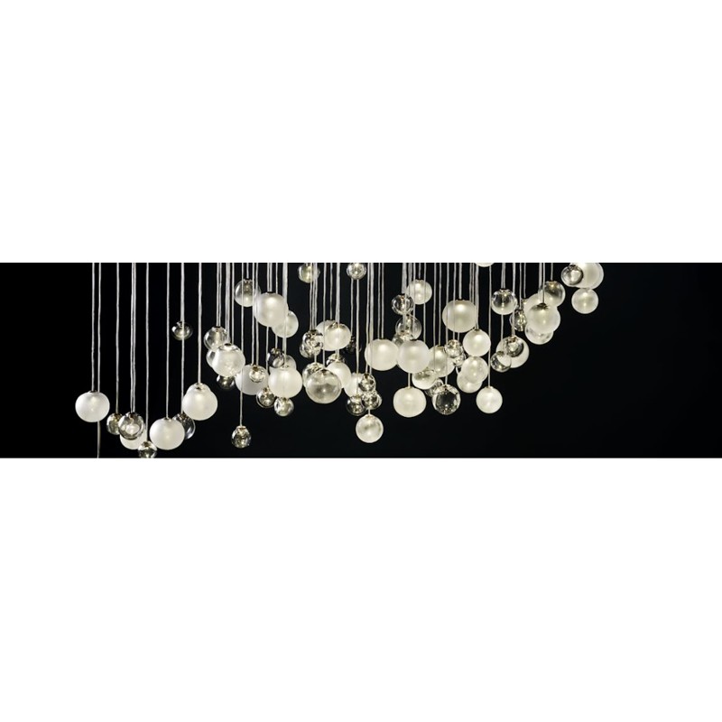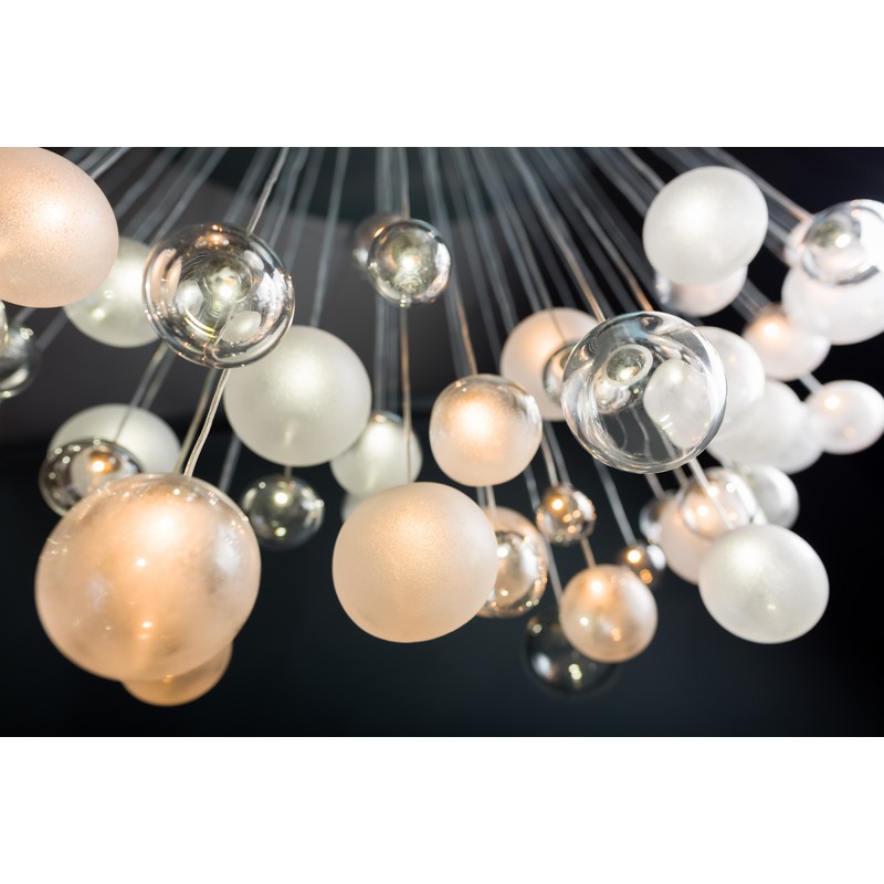 You will certainly appreciate the beauty of individually hand-blown pieces that have been skillfully sandblasted by hand to a variety of patterns. Delicately positioned in a wavelike (or random) pattern and with a mixture of sizes and finishes, these glass pieces will seduce you into the entire lure. Wavelike composition or a randomly placed pieces of individually LED powered pieces, are great to be placed above a dining table, in the living room or in your reception area.