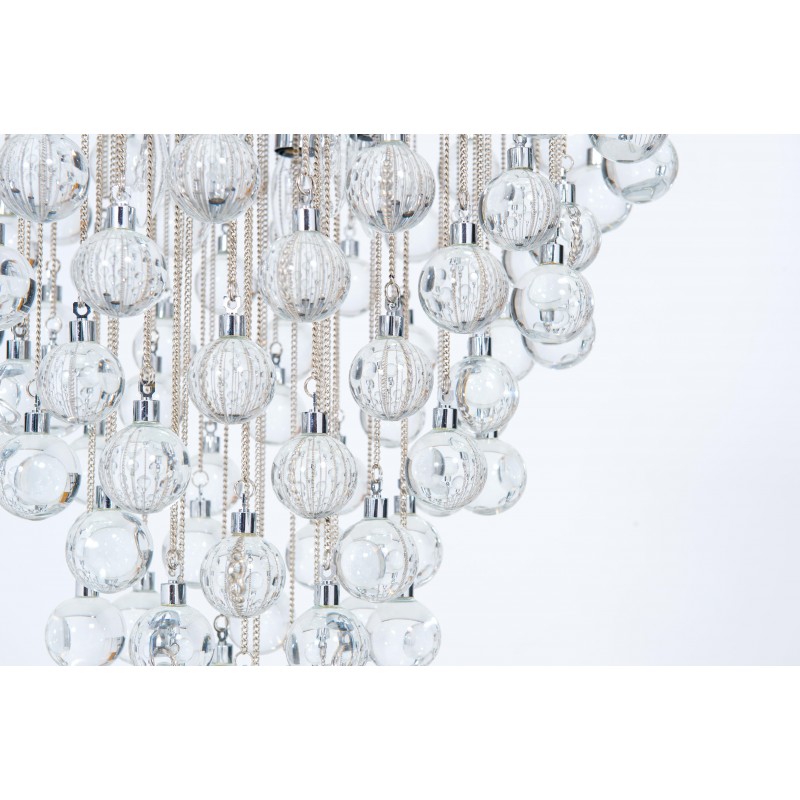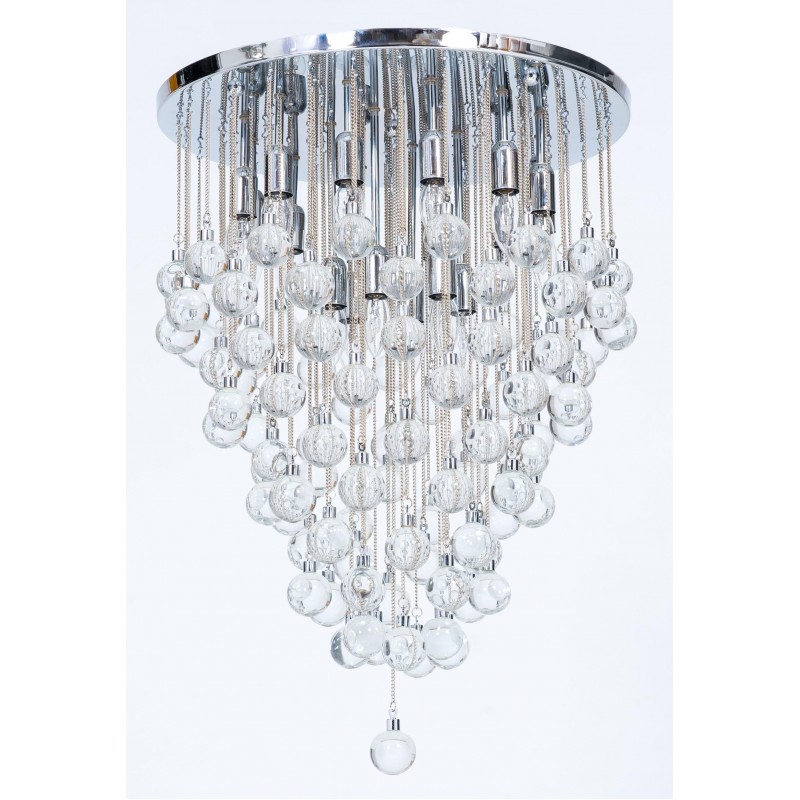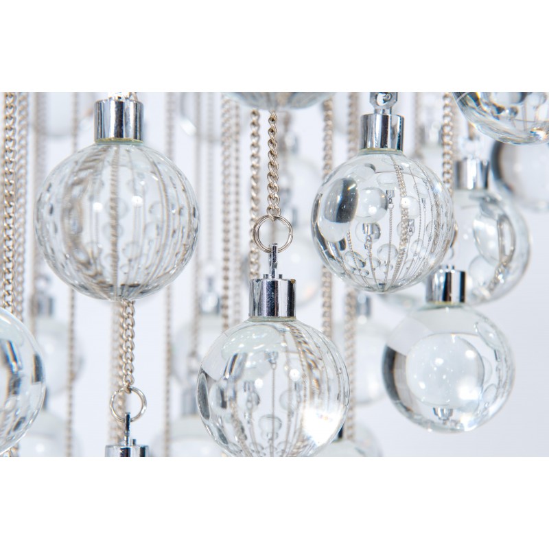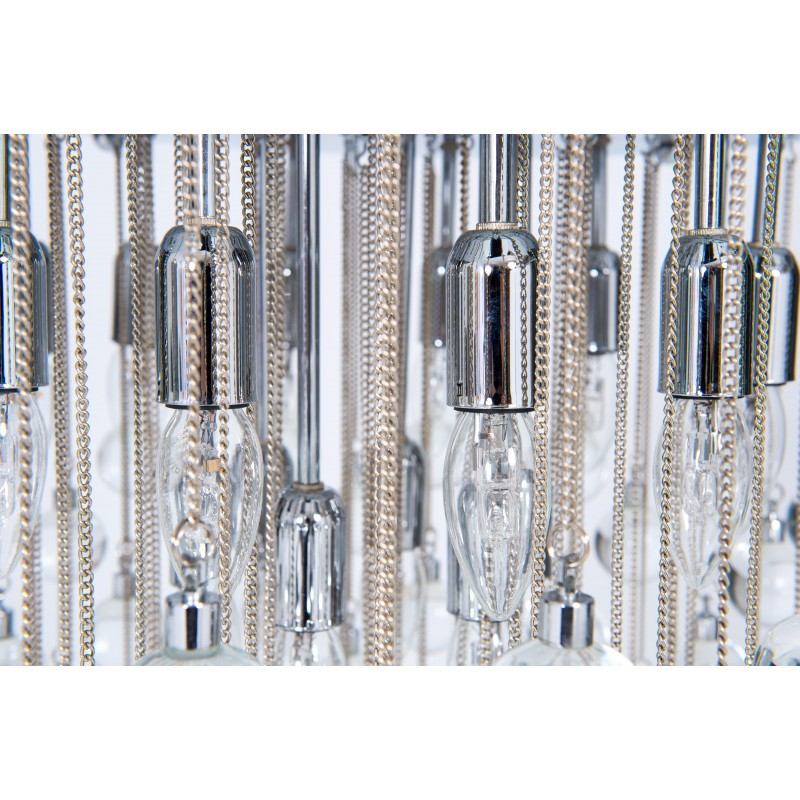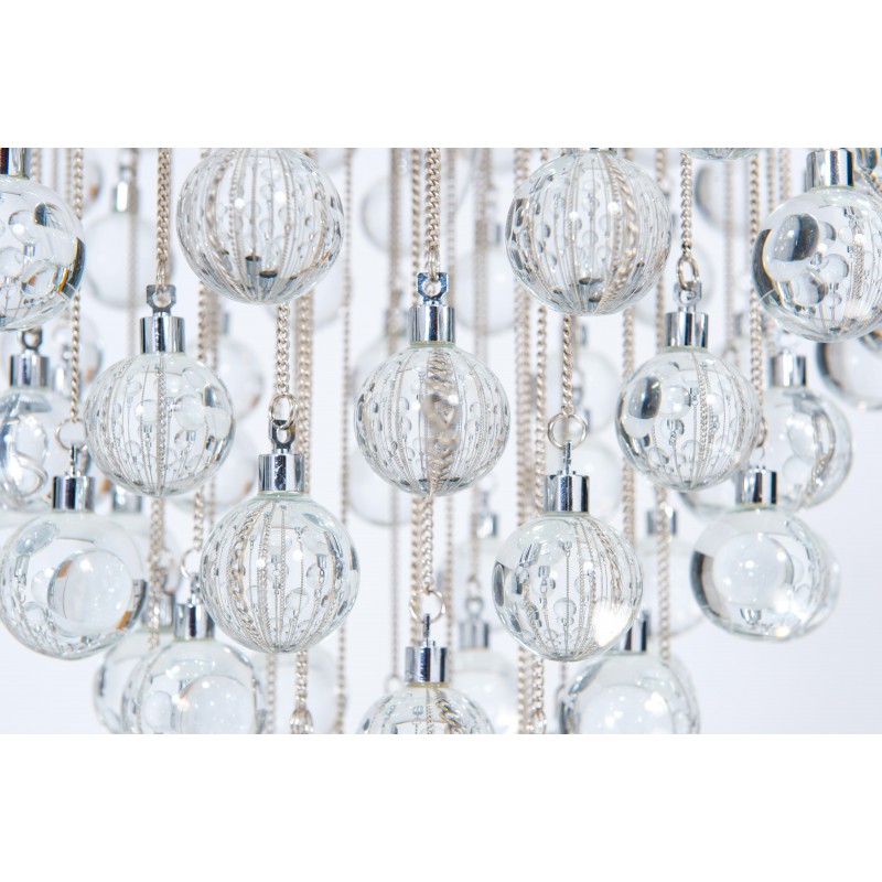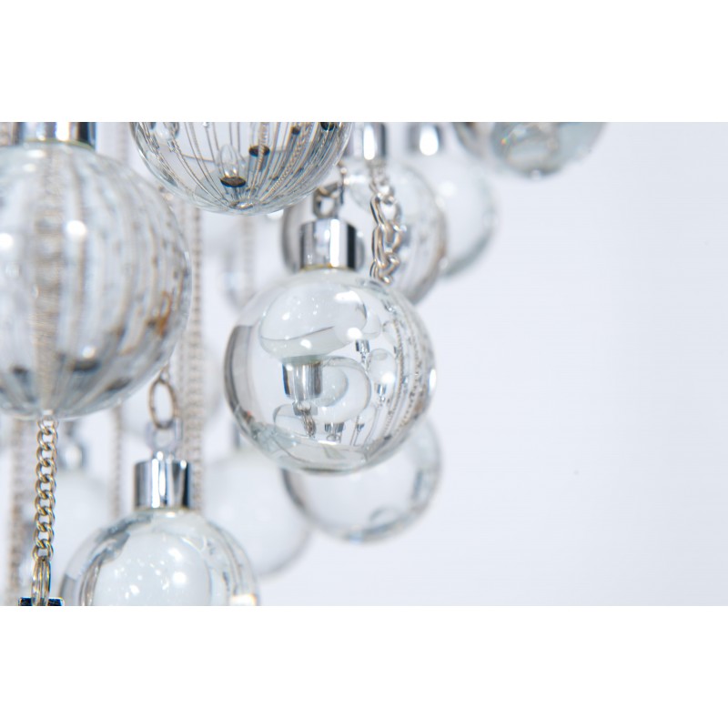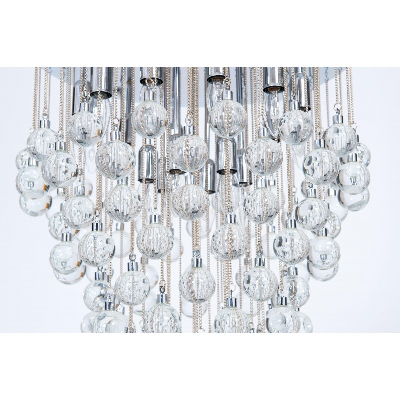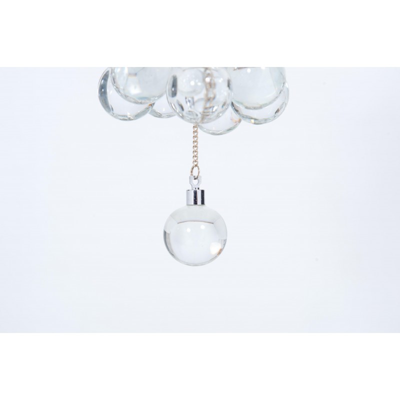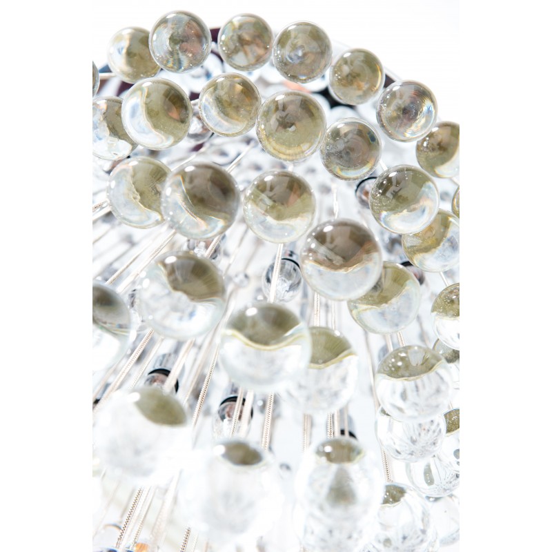 Contemporary modern flushmount with transparent Murano glass spheres, Giovanni Dalla Fina, Italy. Extraordinary flushmount, with a number of elements and details that compose this flush mount is simply outstanding. One hundred glass drops hang from the chromed frame, resembling a stalactite shape, and a total of 18-light illuminate this beautiful artpiece. This is a unique masterpiece of Italian art, entirely made in the Island of Murano, following the ancient glassblowing techniques. The Venetian term to describe the peculiar effect visible in the glass drops is “bollicanti”; this visual effect is best visible when the lights are switched on. This masterpiece is from the Italian artist Giovanni Dalla Fina, and its manufacture is a modern creation. This masterpiece is a unique item, customizable features are also available on demand. The flush mount is in perfect original condition, as documented by the attached photos. The professional rewiring, based on your country’s specifications, is included in the service as our courtesy.