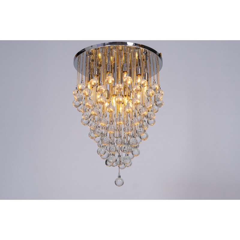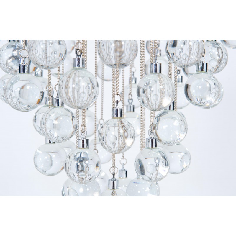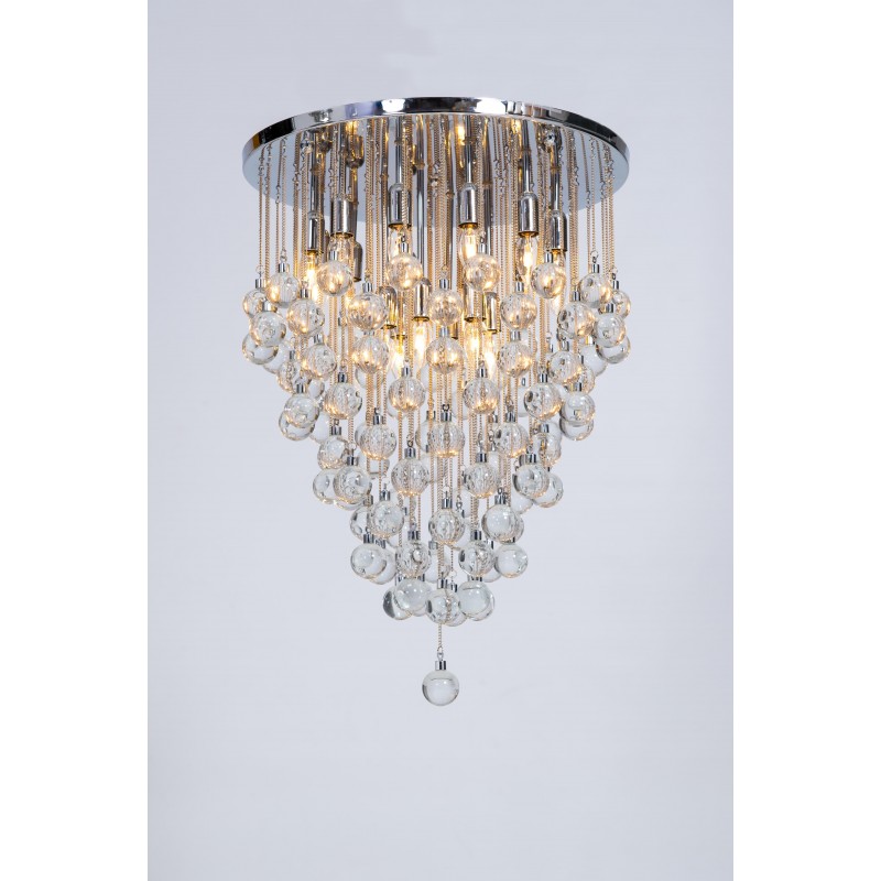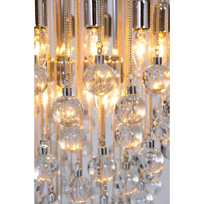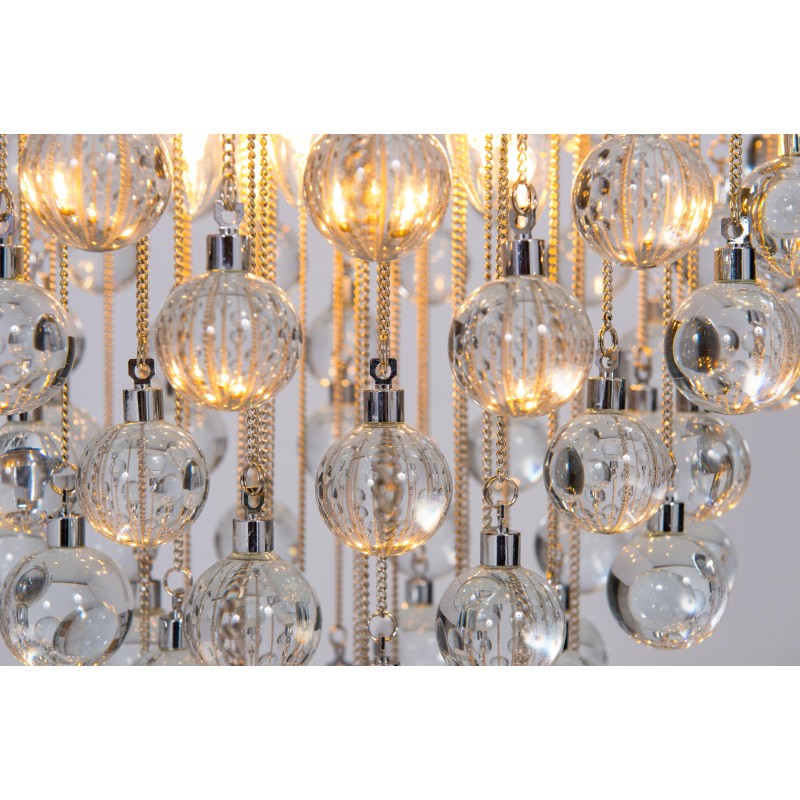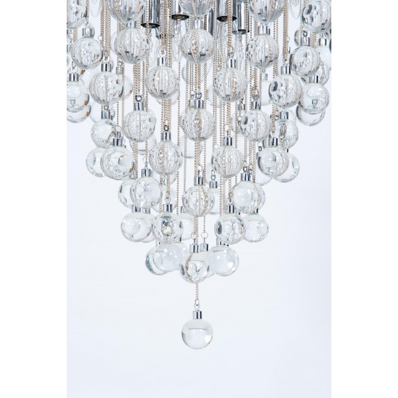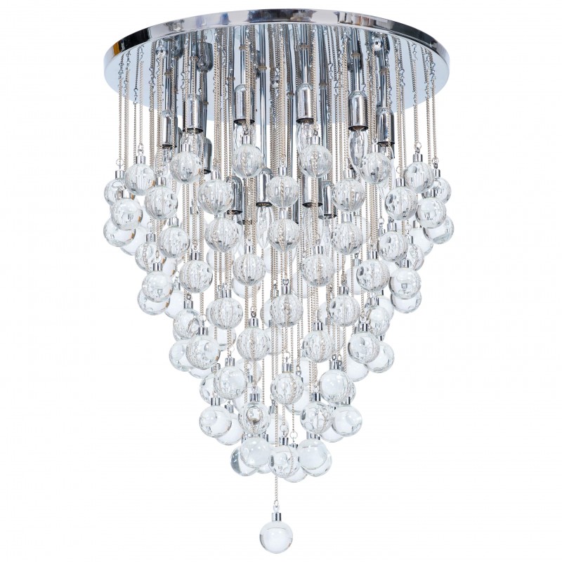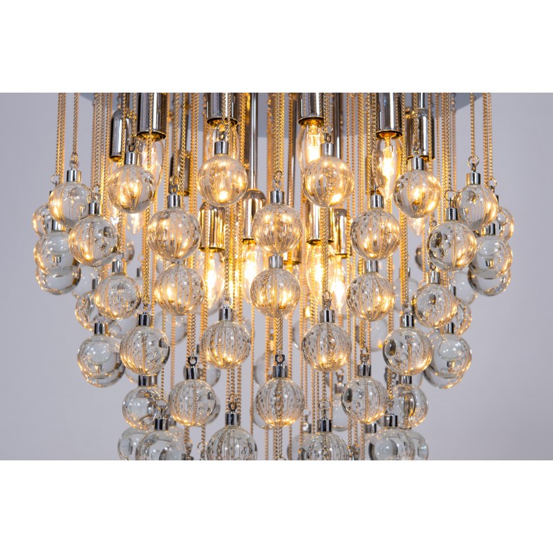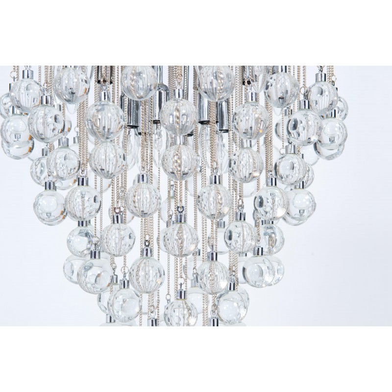 Contemporary modern flushmount with transparent Murano glass spheres, Giovanni Dalla Fina, Italy. Extraordinary flushmount, with a number of elements and details that compose this flush mount is simply outstanding. One hundred glass drops hang from the chromed frame, resembling a stalactite shape, and a total of 18-light illuminate this beautiful artpiece. This is a unique masterpiece of Italian art, entirely made in the Island of Murano, following the ancient glassblowing techniques. The Venetian term to describe the peculiar effect visible in the glass drops is “bollicanti”; this visual effect is best visible when the lights are switched on. This masterpiece is from the Italian artist Giovanni Dalla Fina, and its manufacture is a modern creation. This masterpiece is a unique item, customizable features are also available on demand. The flush mount is in perfect original condition, as documented by the attached photos. The professional rewiring, based on your country’s specifications, is included in the service as our courtesy.