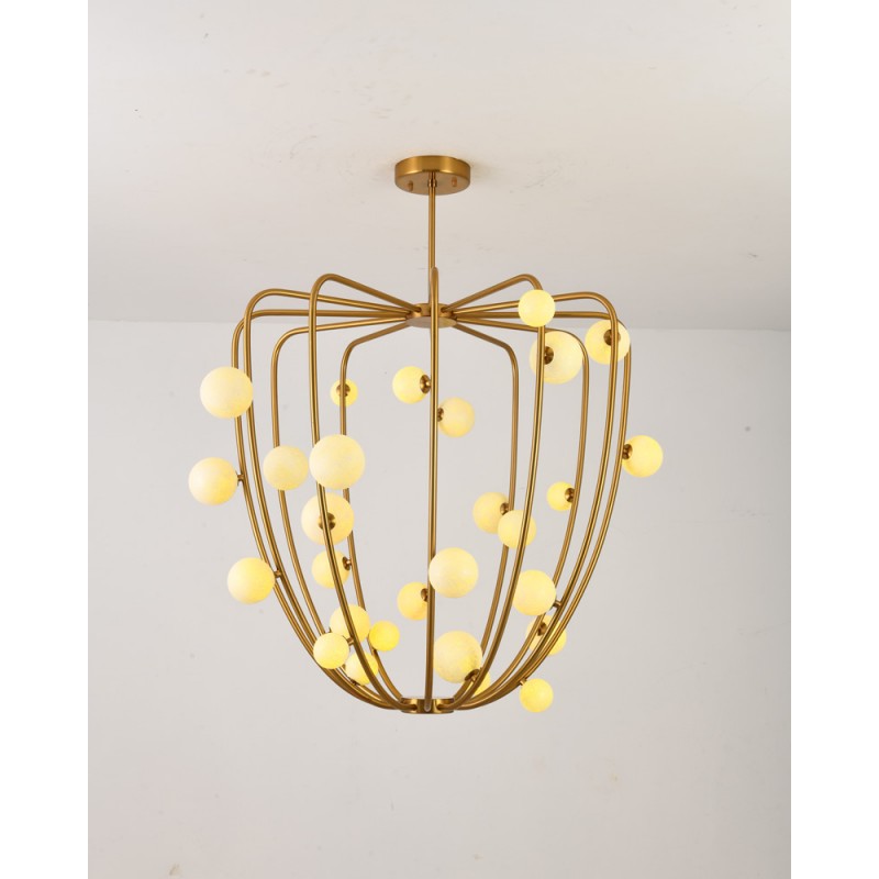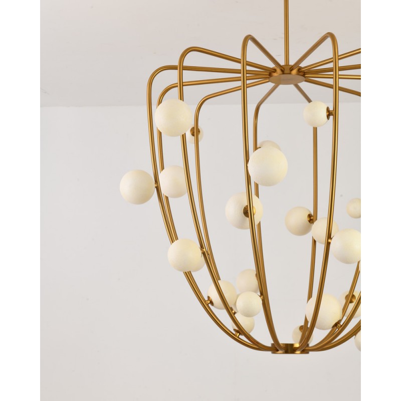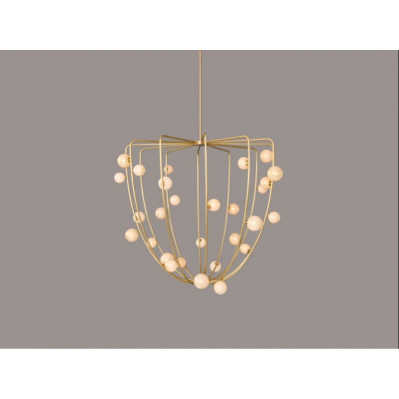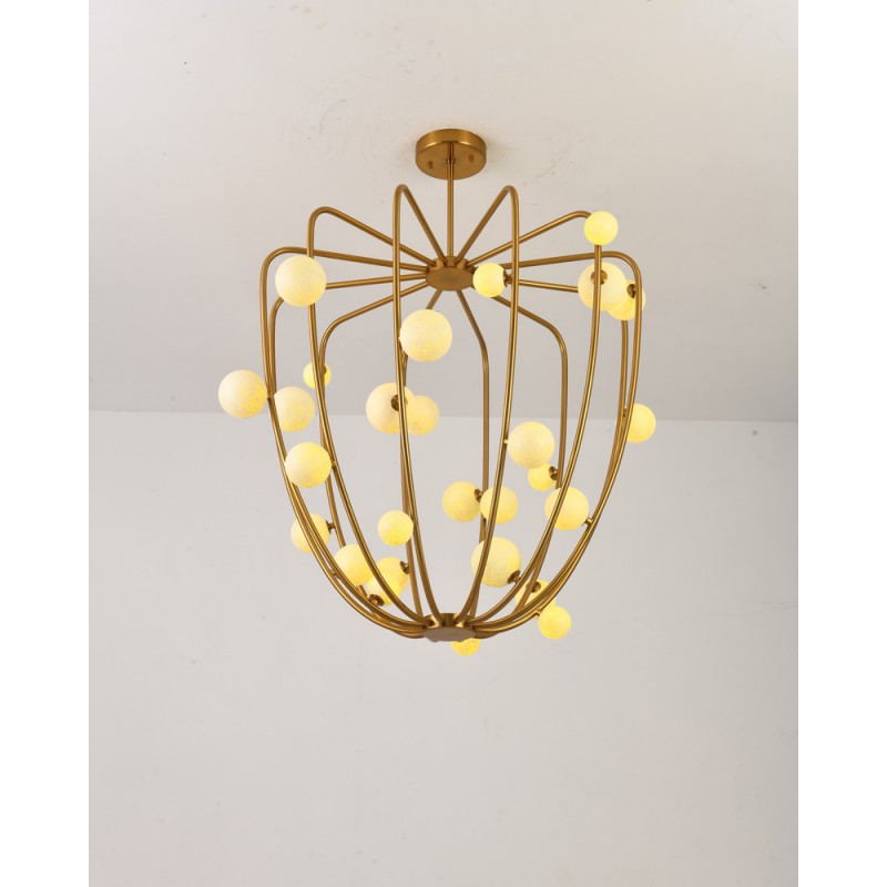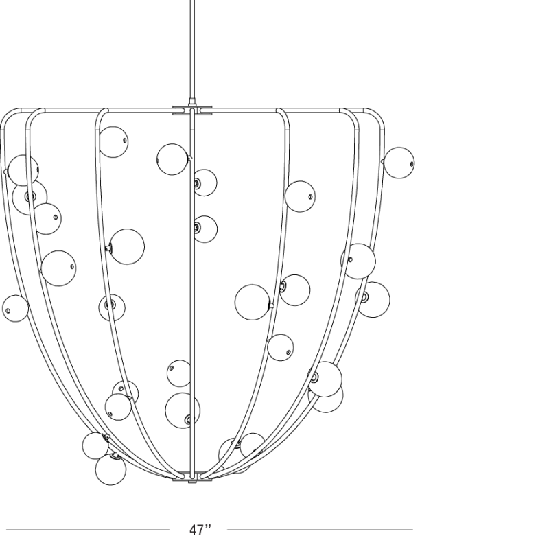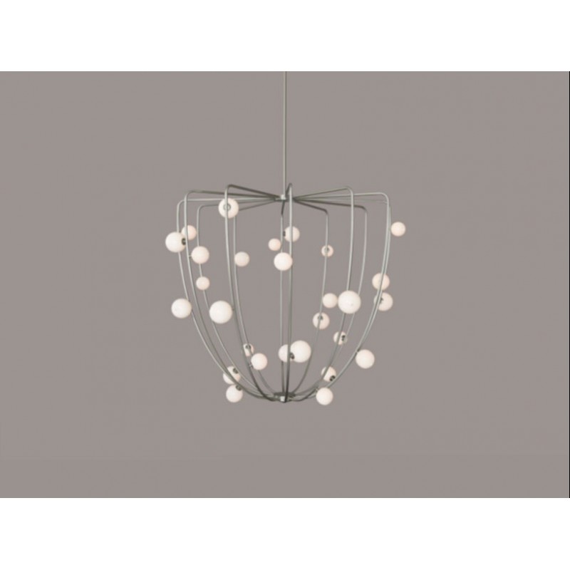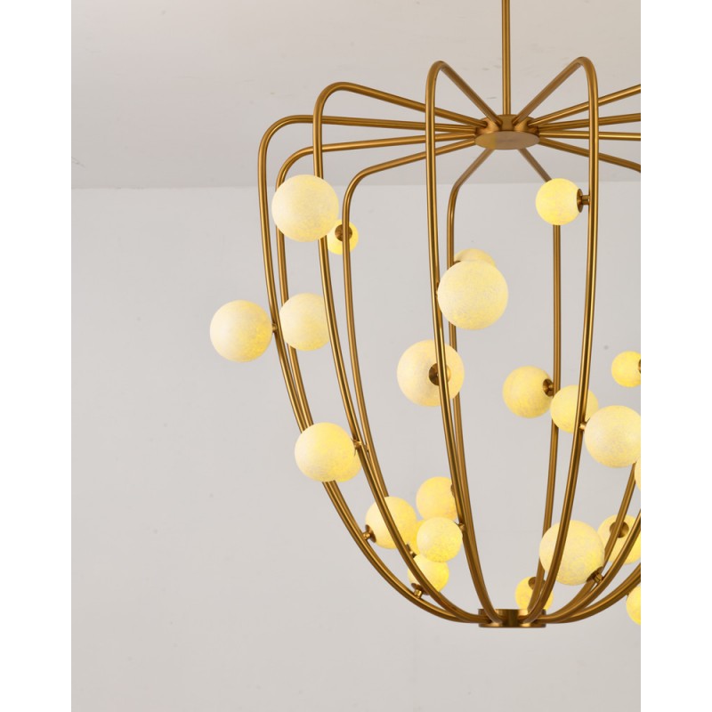 Cherry Bomb chandeliers feature oversized brass armatures and hand-blown mini-globes, recalling underwater cages and traps with small sea bubbles clinging to their surfaces. The Cherry Bomb collection is born with a passion for the spring blossoming Japanese trees that line grand boulevards throughout the world. Alan Mizrahi Lighting Design uses the latest technology, but also incorporates fine materials traditionally hand-crafted by local artisans. Each fixture is meant to be fully integrated, spreading a charming and enchanting play of light. Thus creating a constant interaction between the lamp and the surrounding space.