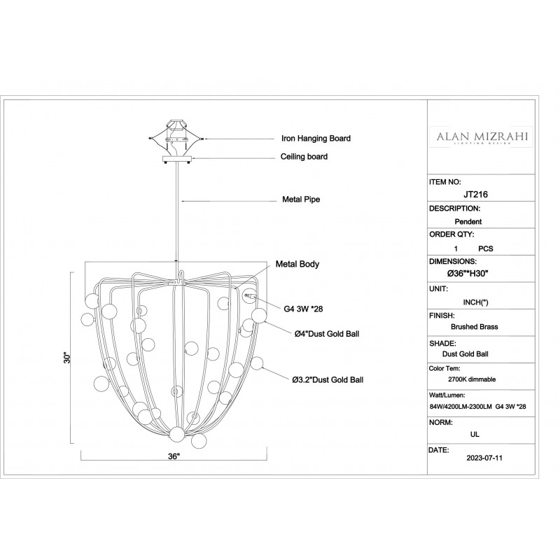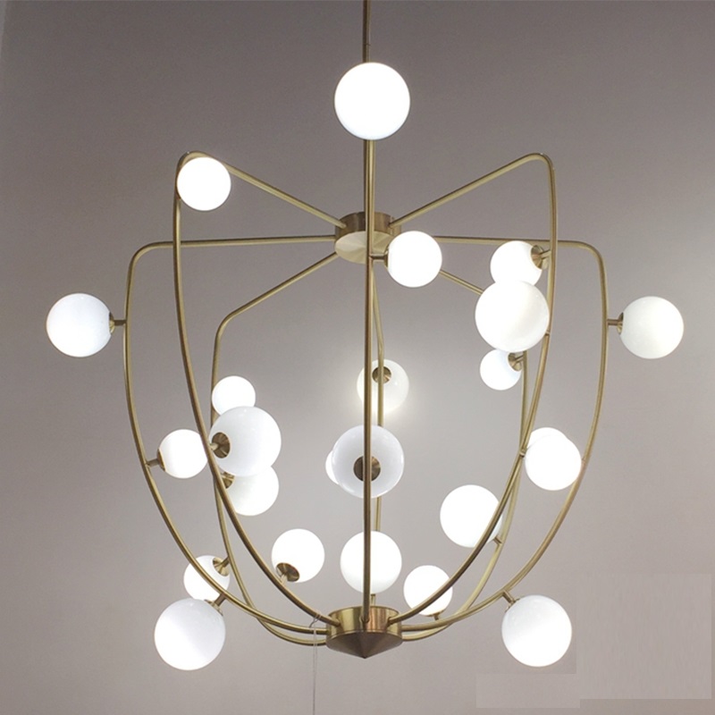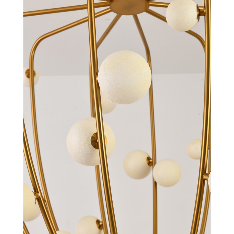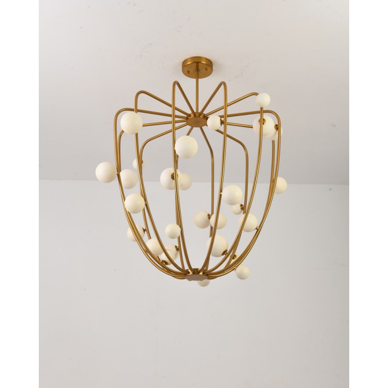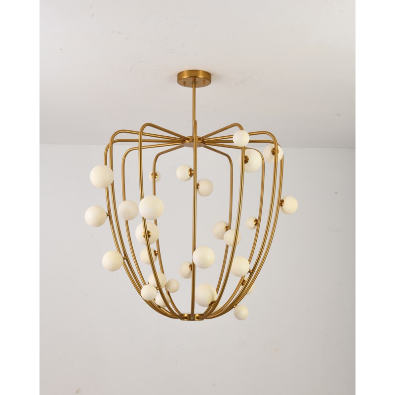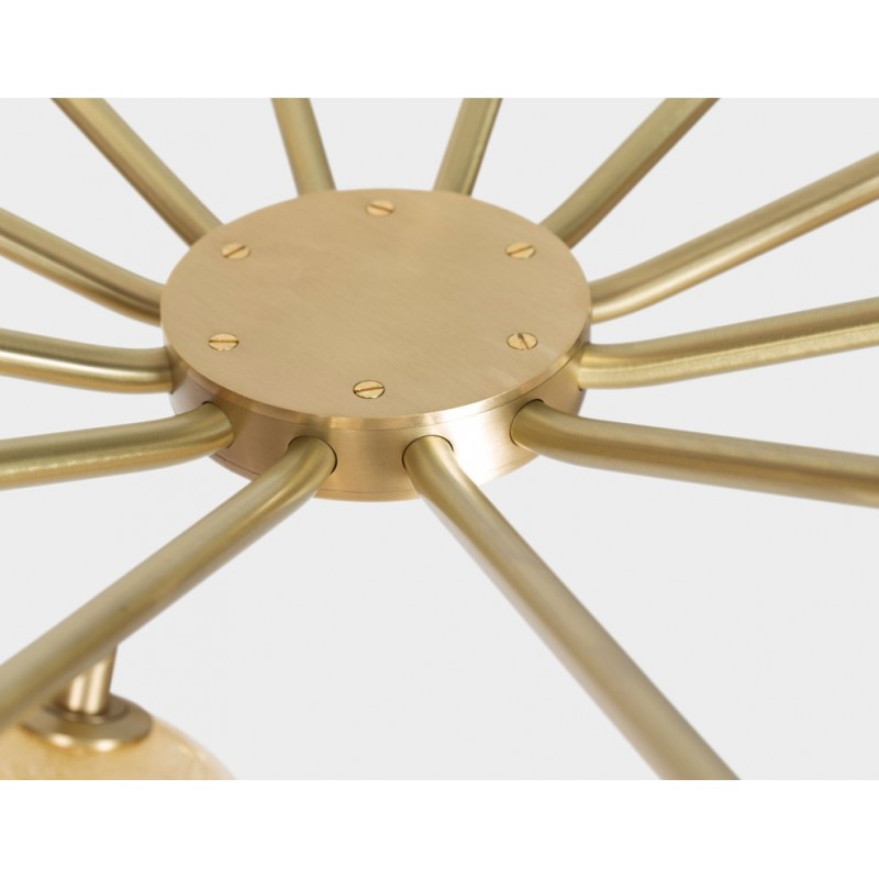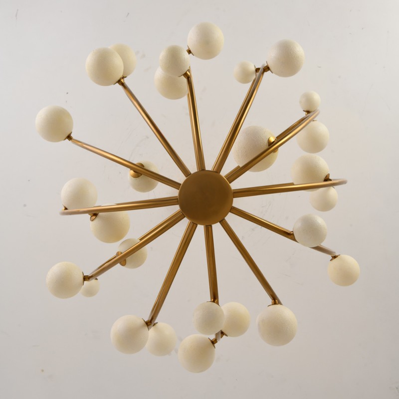 Cherry Bomb chandeliers feature oversized brass armatures and hand-blown mini-globes, recalling underwater cages and traps with small sea bubbles clinging to their surfaces. The Cherry Bomb collection is born with a passion for the spring blossoming Japanese trees that line grand boulevards throughout the world. Alan Mizrahi Lighting Design uses the latest technology, but also incorporates fine materials traditionally hand-crafted by local artisans. Each fixture is meant to be fully integrated, spreading a charming and enchanting play of light. Thus creating a constant interaction between the lamp and the surrounding space.