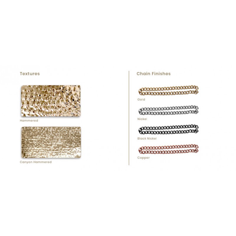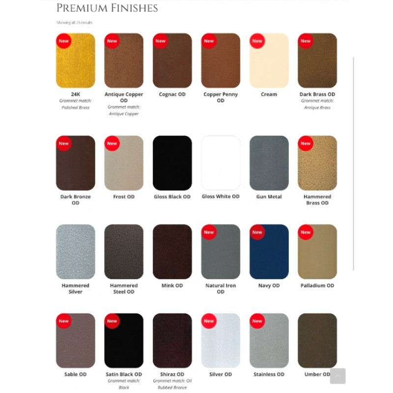 Combinations such as black and gold, chrome, black and glass, copper and black, and more!