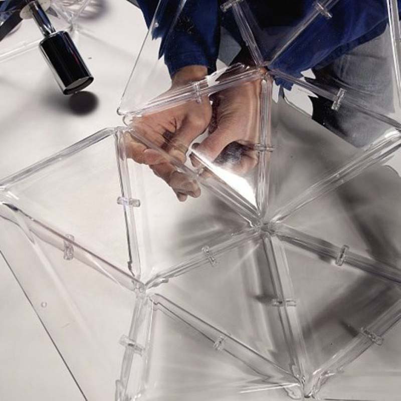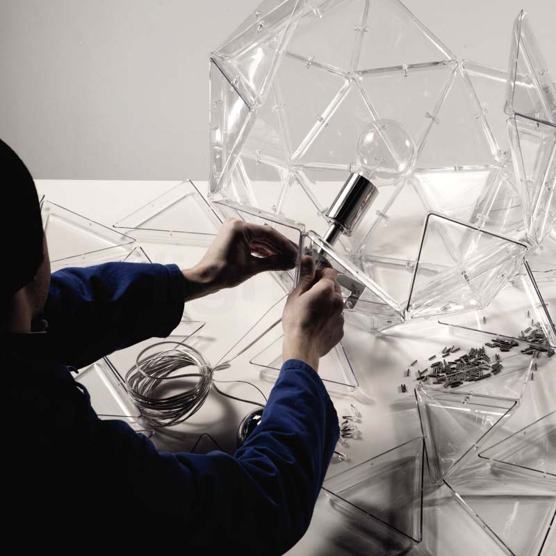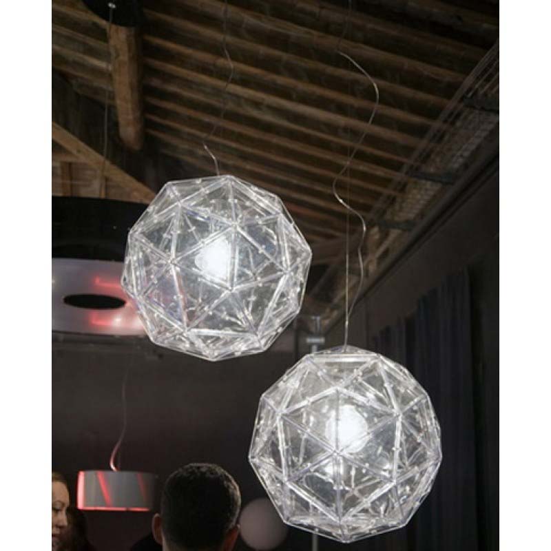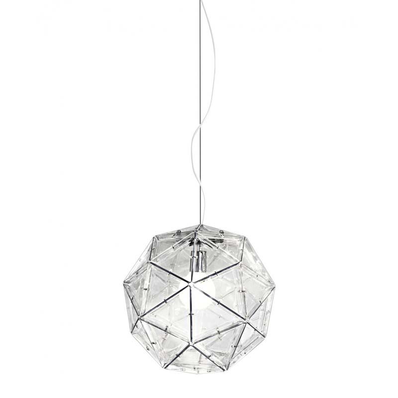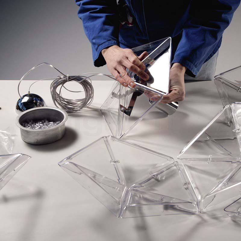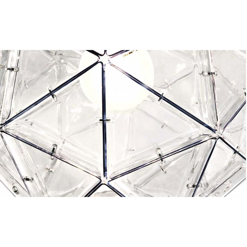 When it comes to pieces full of statement-making pizazz and subtle modern shapes, this is not one to miss.  The geometric layout and fun, clear simplicity make this chandelier one to fit many settings flawlessly. Its stainless-steel frame is covered from top to bottom in transparent polycarbonate triangles that bond together in a gorgeous fashion, delivering to you only the hippest and chic pendant lamp you can imagine.  In addition, like all our pieces, this chandelier is also available in any finish you'd like, ensuring the piece fits your space and your preferences equally.