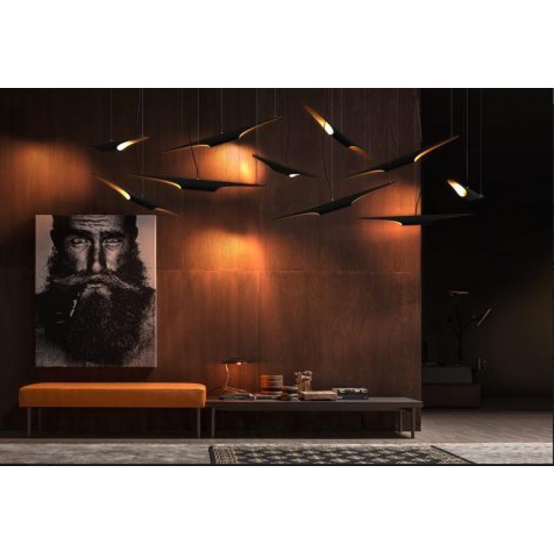 Coltrane pendant lamp is one of top best sellers. With a minimalist and industrial feeling to it, it is not, however, hard to understand where the mid-century inspiration lies. Coltrane is a simple suspended ceiling light, which is handmade in steel. It features a steel cord and a magnetic disc at the top, while down below the canopy is built out of stainless steel, with a gold-plated finish. The shade is also made of steel but it is lacquered a matte gold on the outside and a gold powder paint on the inside. An industrial pendant lighting design fit for the most demanding setting, with a seal of high-quality craftsmanship only delivered by the best artisans in the industry. Coltrane is a great mid-century modern lamp for more minimalist home interiors, as well as for contemporary hotel decor.