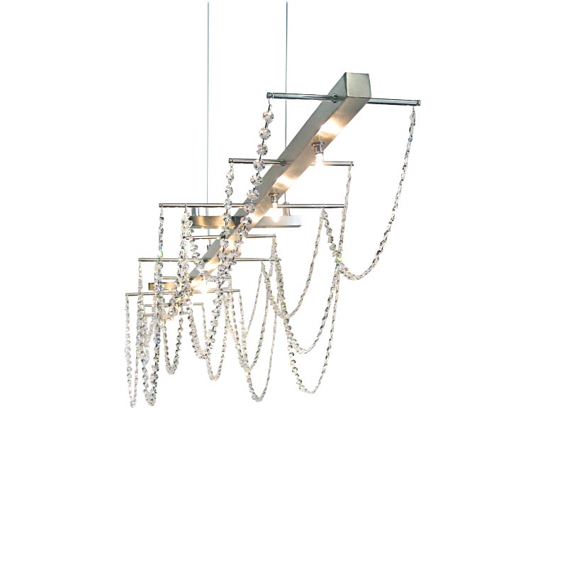 The Lounge is a unique display of chic design and modern innovation at it's finest. The rediscovery of crystal as a conductor as a magical rare light source pushed Designers to define creation within a repertoire of ever-changing material making each piece an original work. The natural and precious nature of this crystal becomes the first argument of this seductive lighting. Its size is the first seducing argument, broken lines streak to the ceiling, squares, and rectangles of light create a subtly receptive universe, crystals bring mystery and uniqueness to these creations. From a single production principle, it is made a line that is eternal, paradoxically, always renewed and always the same. This collection “Lounge" allows us the freedom to become the favorite of the French haute couture. Customized sizes realized by our development department become available for luxury boutiques. The key to an elegant, opulent, bespoke design is understanding the aspirations of the client, the relevance of location and maximizing the potential of existing elements of the space.
