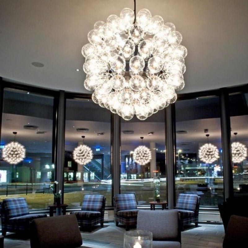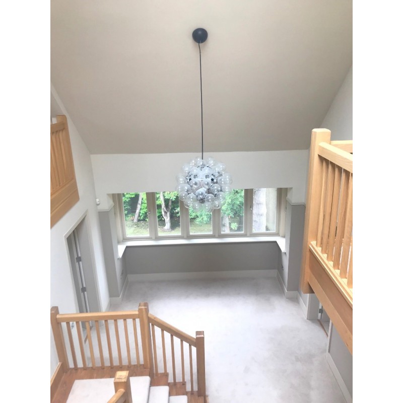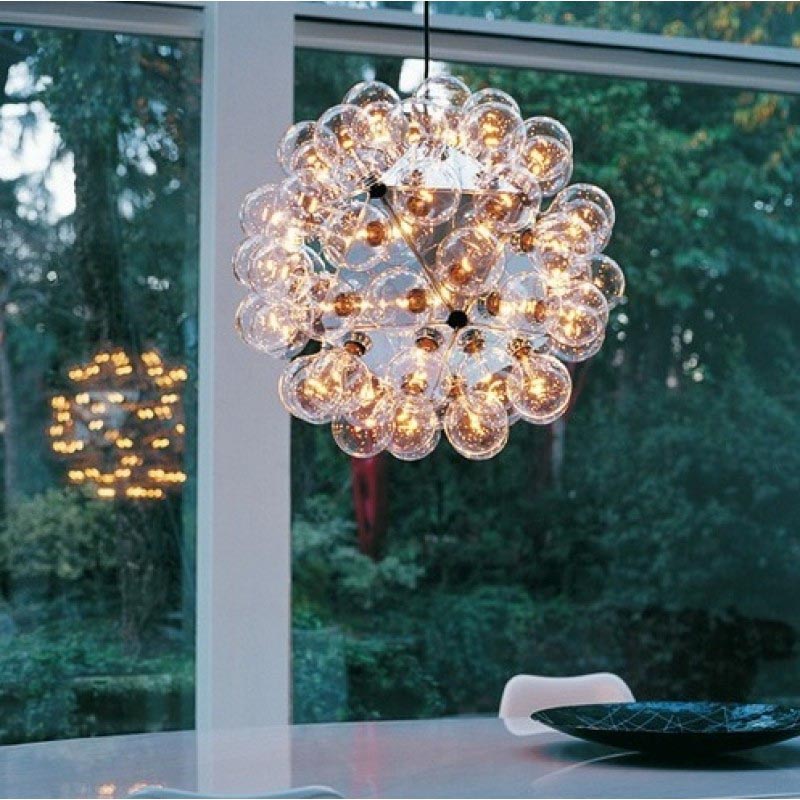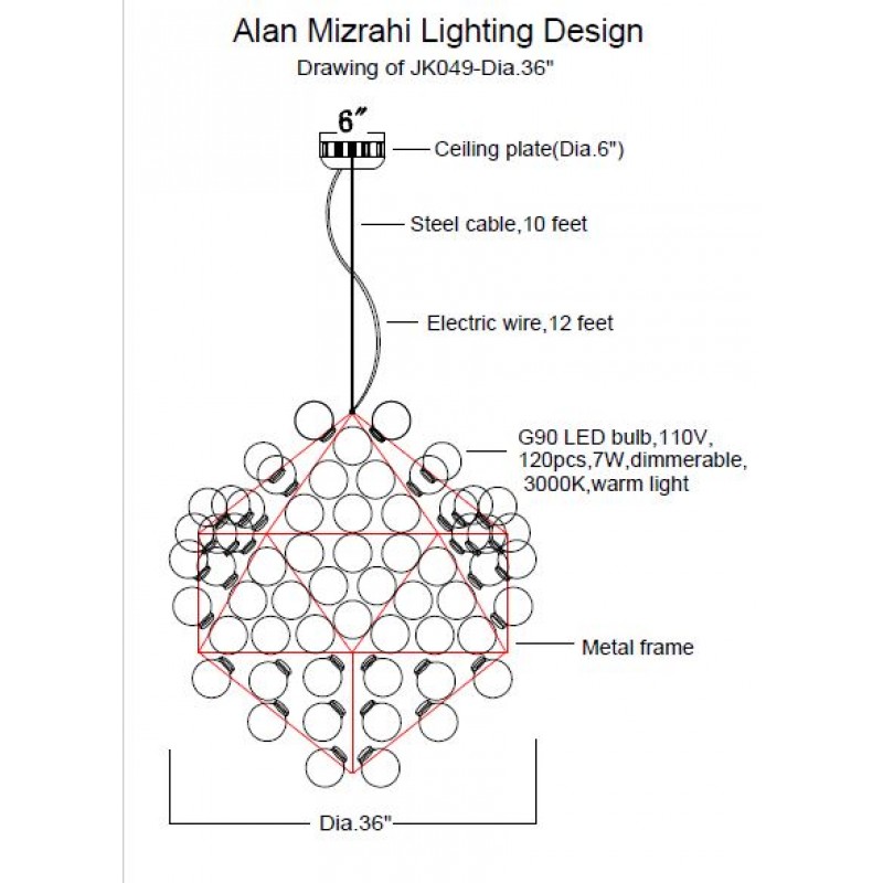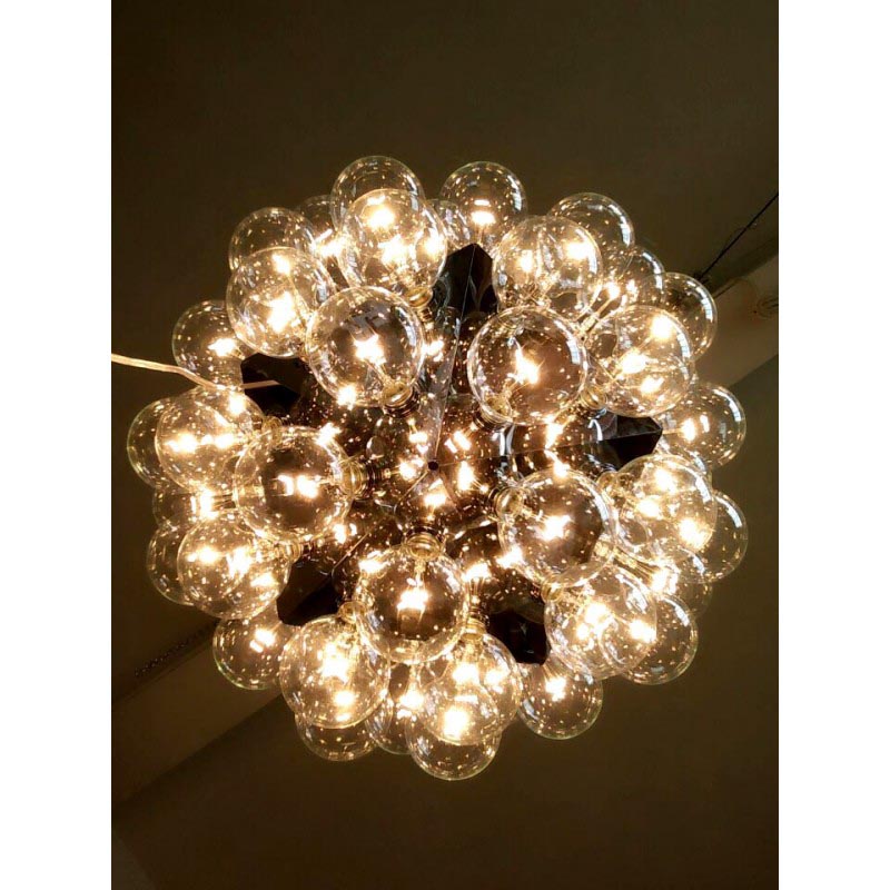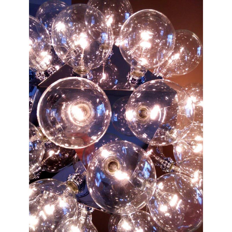Bulbs: 60 clear Globolux lamps-60 X 25W G40 incandescent lamps OR 13W PLC GX23-Fluorescent bulbs (You can choose one of those two bulb types for this piece. It's 60 lights for this size no matter what type of bulb you choose.)