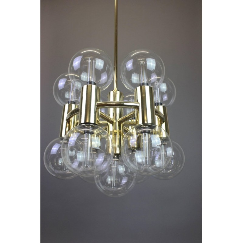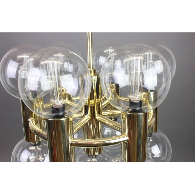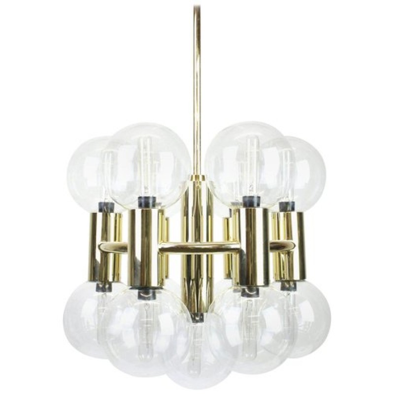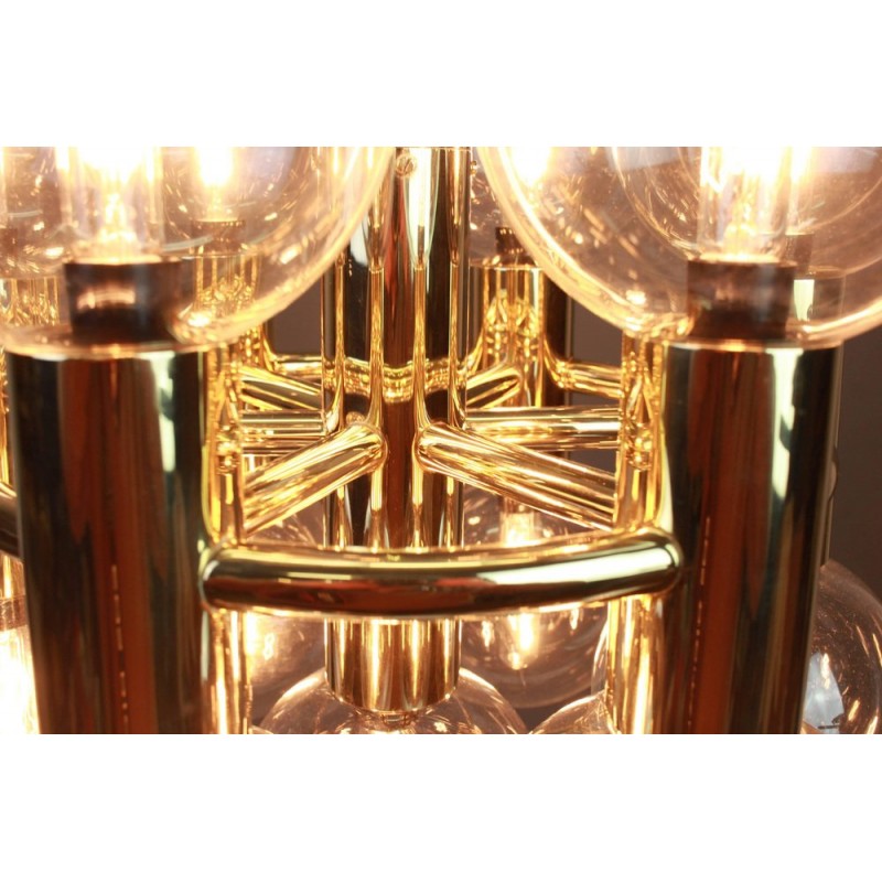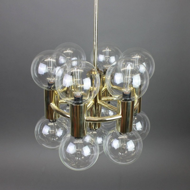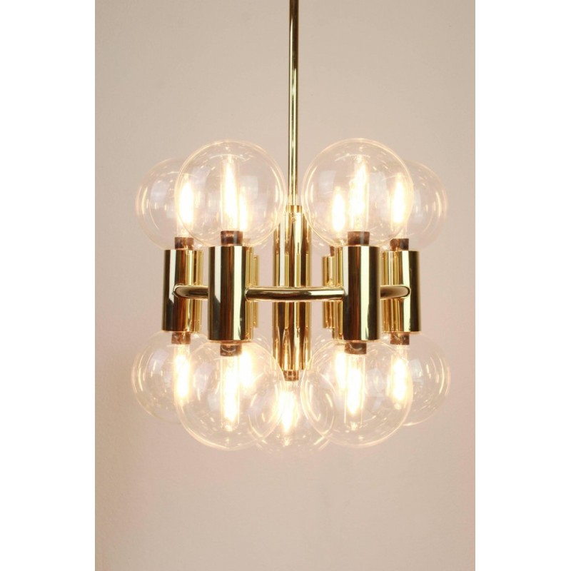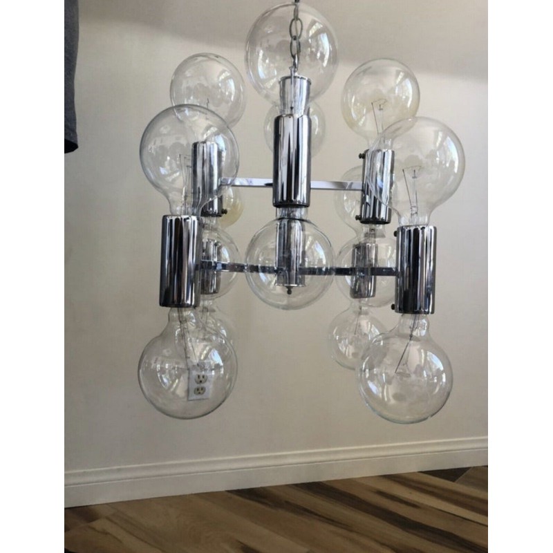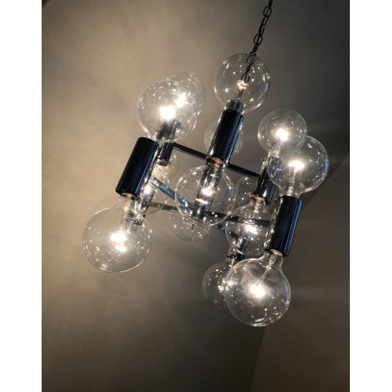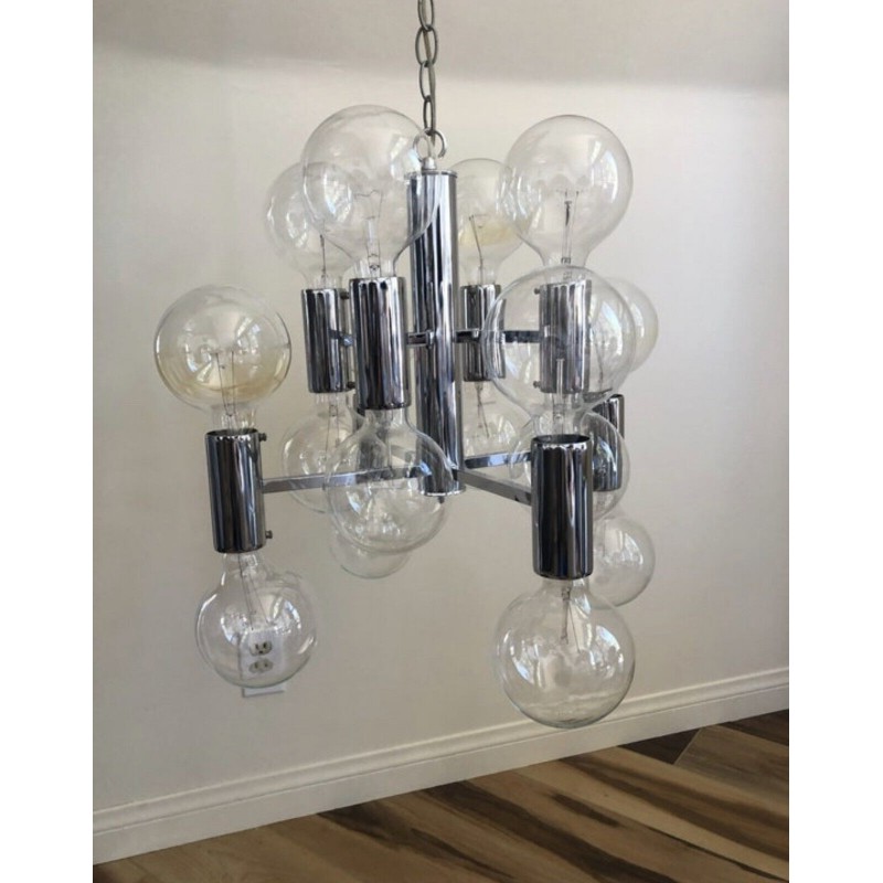 This chandelier spreads the light of the large amount of 37 spheres, divided over two levels. The metal frame is chrome-colored, which beautifully combines with the clear glass spheres. The ball-shaped shades have exceptional color, they are like pearls. Combined color and material, these chandeliers create a stunning light partition and spread a nice warm and diffuse light. We really like to play with light and shadow to create an atmosphere within an interior space. Not only does proper illumination add basic functionality, but it can also contribute to an overall design style and act as a tool to highlight different features or create the perfect ambiance.