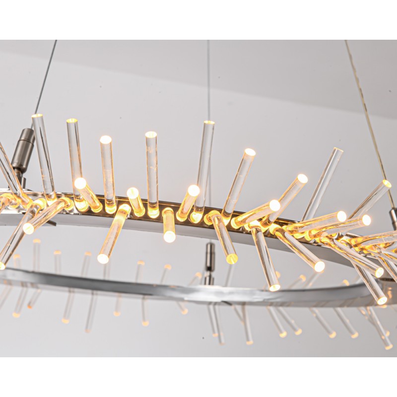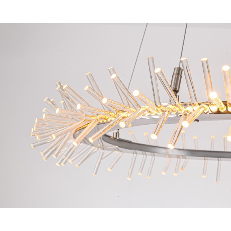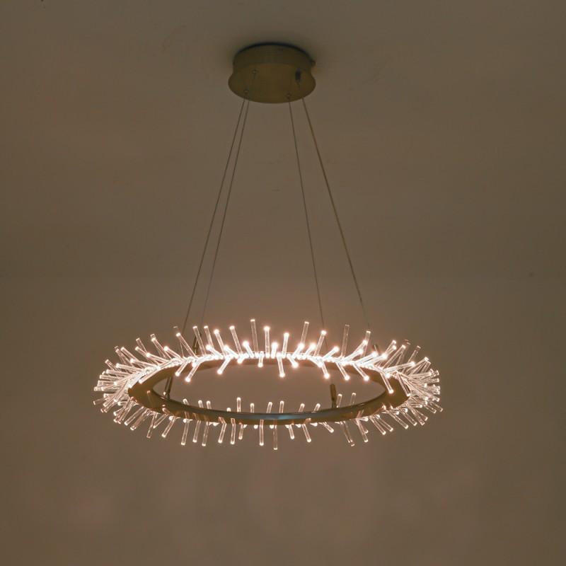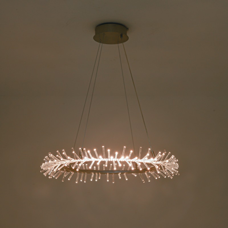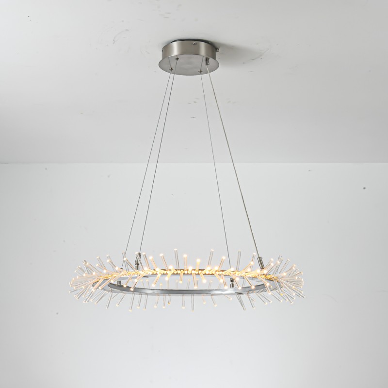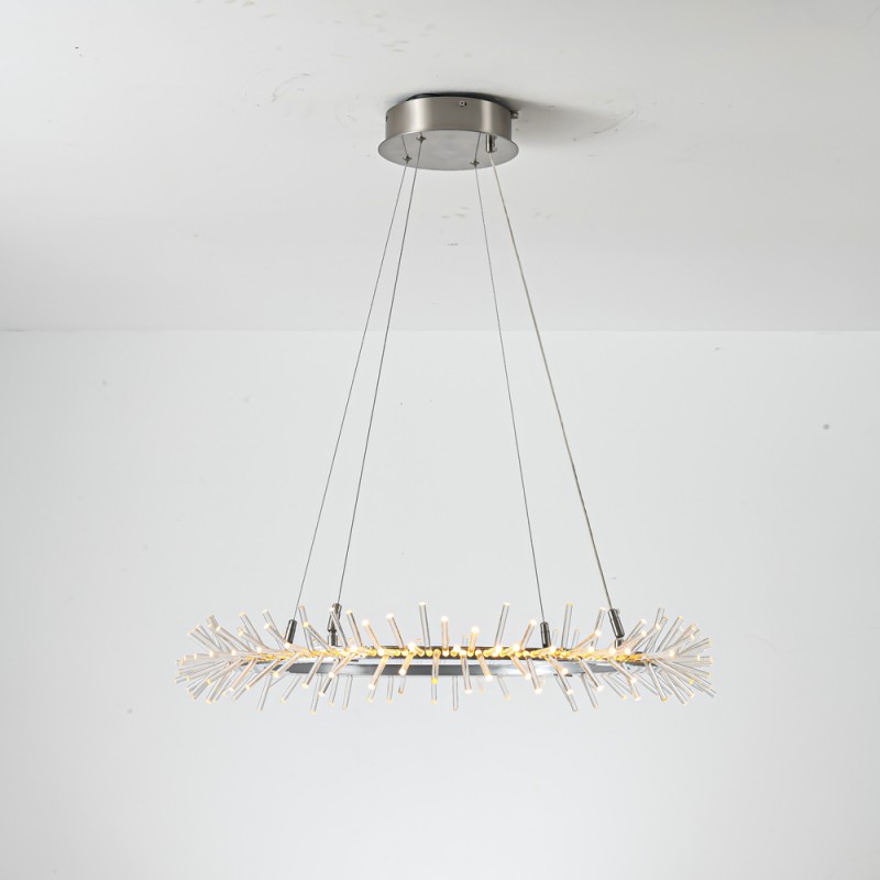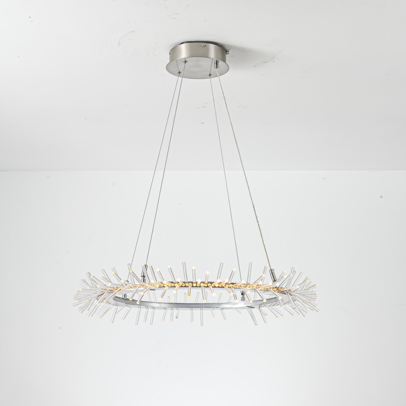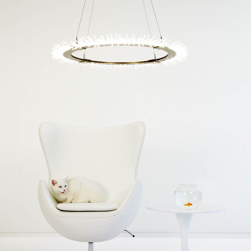 Beyond brightening your abode, chandeliers make a statement in any interior design without occupying valuable floor space. Take this piece for example: Featuring a wagon-wheel design, this piece creates instant eye-catching appeal, while also bringing all the character of a country cottage right into your abode. The Anemone Circular Pendant features a circular LED light guide suspended from four cables which feeds light to the Anemone's bristles.  Attract attention, provoke emotion to the imagination with games of light and matter. Such as the ambition and the creative spark of the “ANEMONE” style. An invisible metal skeleton traces the line of a primordial geometric frame in space.