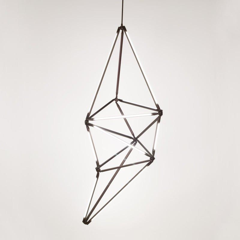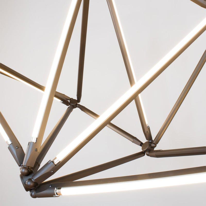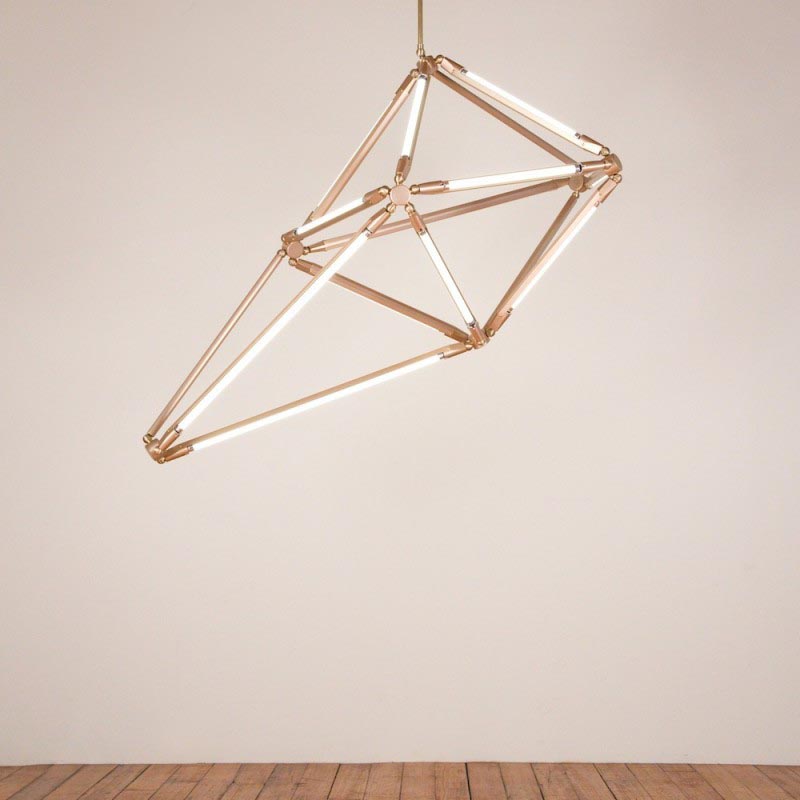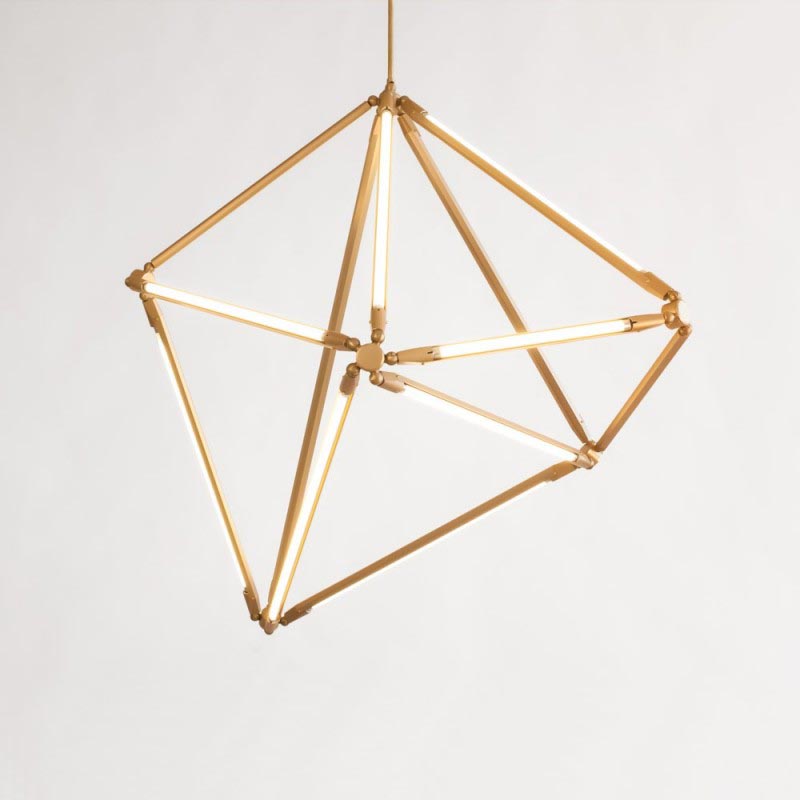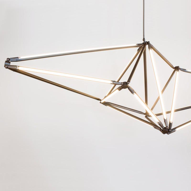 The SHY Light uses the spare beauty of thin LED tubes to define the edges of its shape; in this way, the function of the piece is created by its form, and vice-versa. It is also inspired by crystalline structures, both by the shapes they take as well as their growth. The modular hardware that comprises the SHY light can be reconfigured in a myriad of different ways, taking new shapes according to what the space demands; like crystals, each can be different while sharing the same structural foundation.