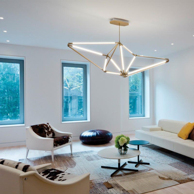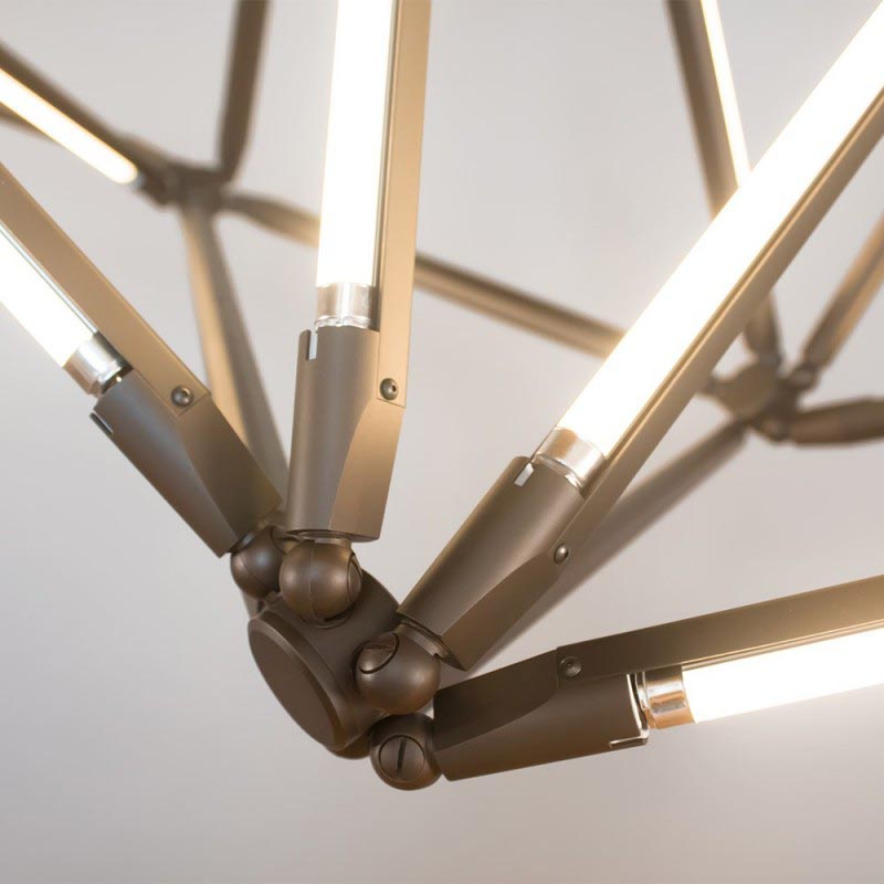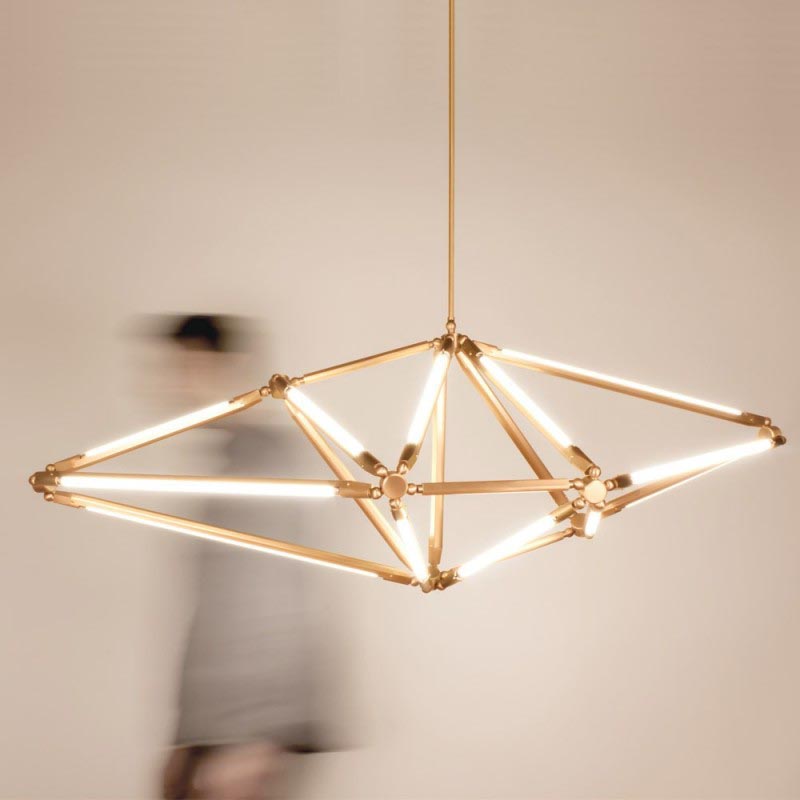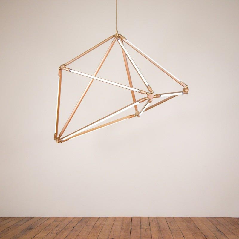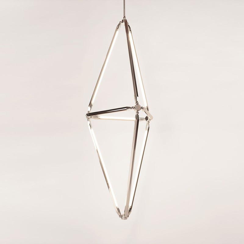The SHY Light uses the spare beauty of thin LED tubes to define the edges of its shape; in this way, the function of the piece is created by its form, and vice-versa. It is also inspired by crystalline structures, both by the shapes they take as well as their growth. The modular hardware that comprises the SHY light can be reconfigured in a myriad of different ways, taking new shapes according to what the space demands; like crystals, each can be different while sharing the same structural foundation.