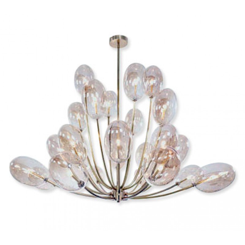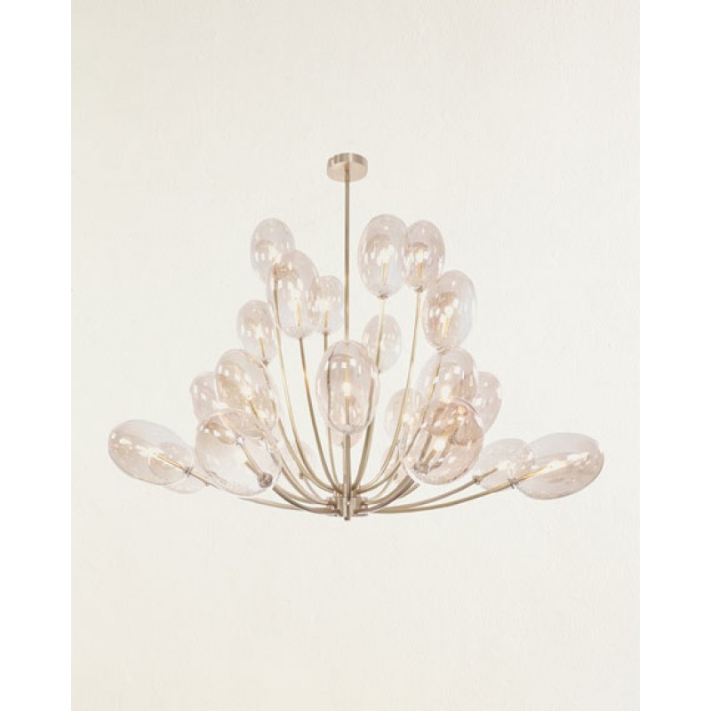 This magnificent chandelier with twenty-four lights has an antique brass finish and features hand-blown glass globes. Miniature glass beads are supplied that nestle within each globe, creating a lovely conversation piece.