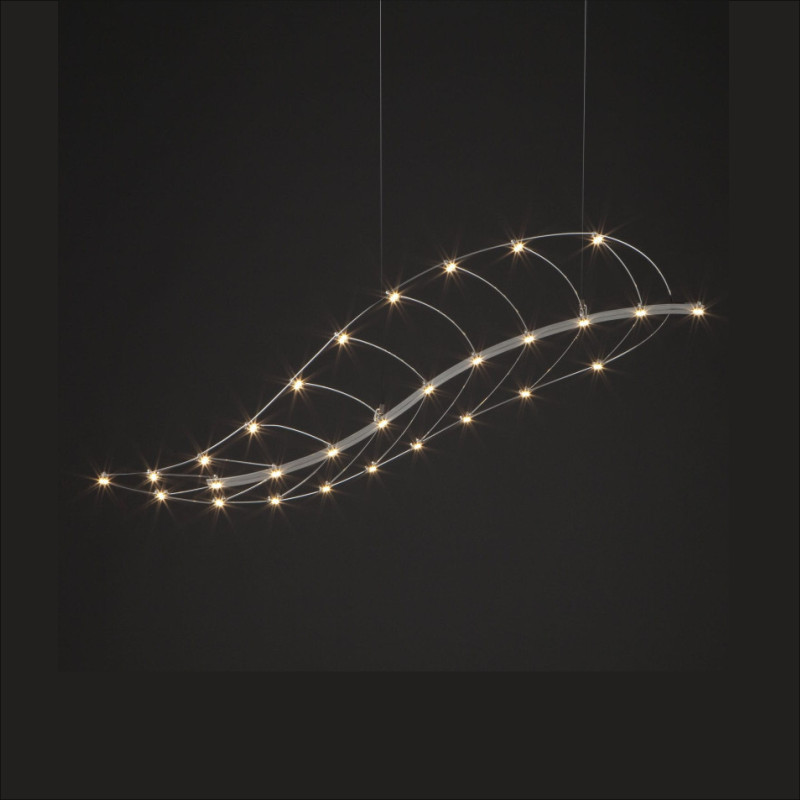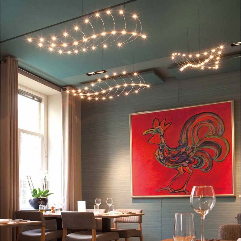 PHILAE is inspired by autumn's falling leaves, make any combination you like. By playing with the length of the cables, and the number and sizes, you create your own lighting installation. LEDs line along the side of the fixture, and the middle spine. the circuit boards have LEDs on both sides; 2/3 of the light is going downwards and 1/3 is going upwards. All our Chandeliers can be customized by the number of lights, style, color, and size to meet your specific needs. Every chandelier can also be combined with a matching table lamp and wall lamp to accomplish the best room design.