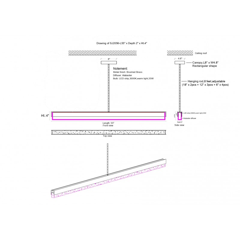 | Overall | 35” Width x 2” Depth x 4” Height |
