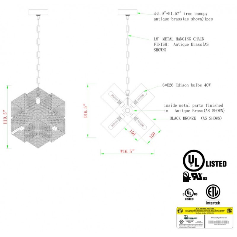 This perforated steel chandelier is perfectly playful. The perforated cubes take on a two-tone effect with alternating bronze and antique brass finishes. When lit, the piece looks like a tumbled dice. At Alan Mizrahi Lighting Design, we supply and manufacturer many highly sought after designer pieces. All Chandeliers can be customized by number of lights, style, color and size to meet your specific needs. Every chandelier can also be combined with a matching table lamp and wall lamp to accomplish the best room design. Our company provide collections that can make all your project dreams come true. Lighting products play an important role in any room setting. Hence, you need to make sure that the items you choose should brighten the room while rendering it a relaxing and welcoming feel as well.