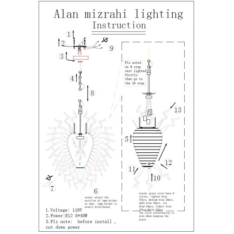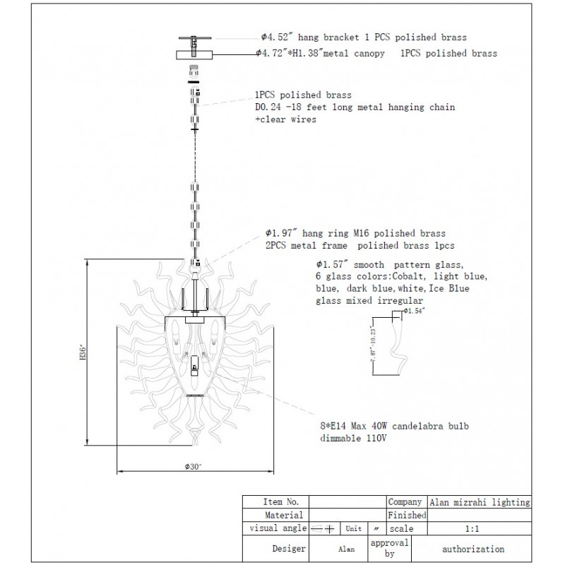 Lights: 20L110V USA/220V Europe 60WE12 bulbs (included)