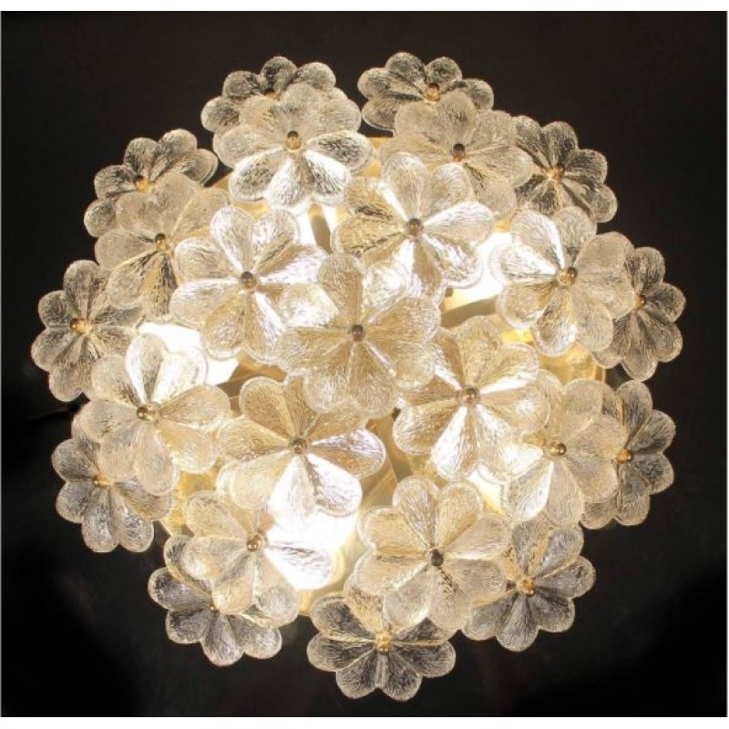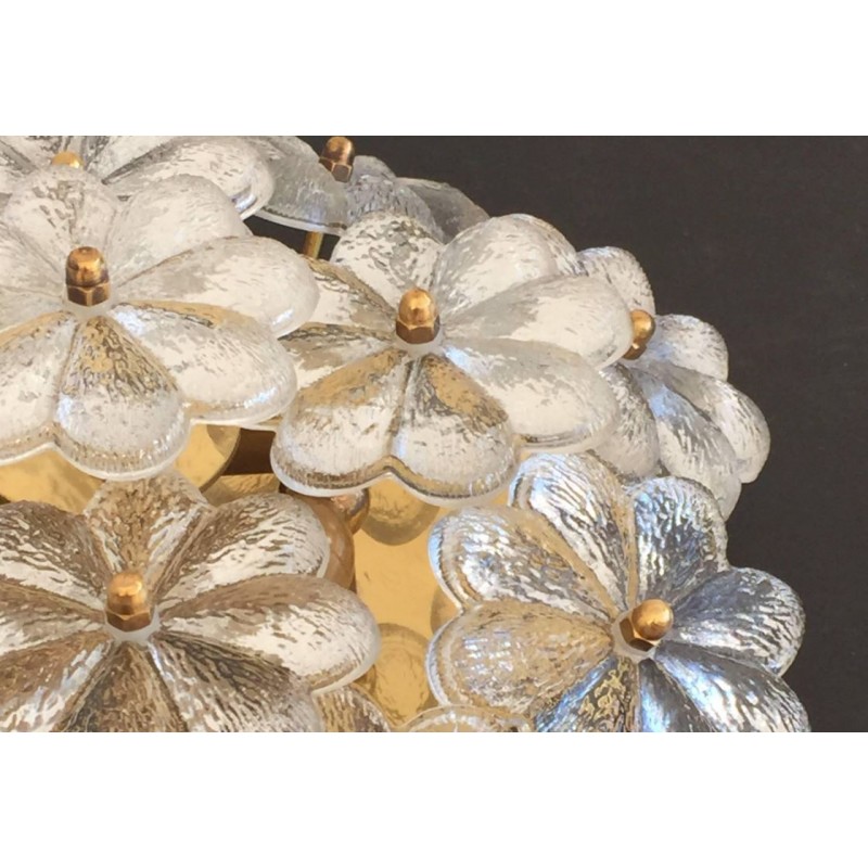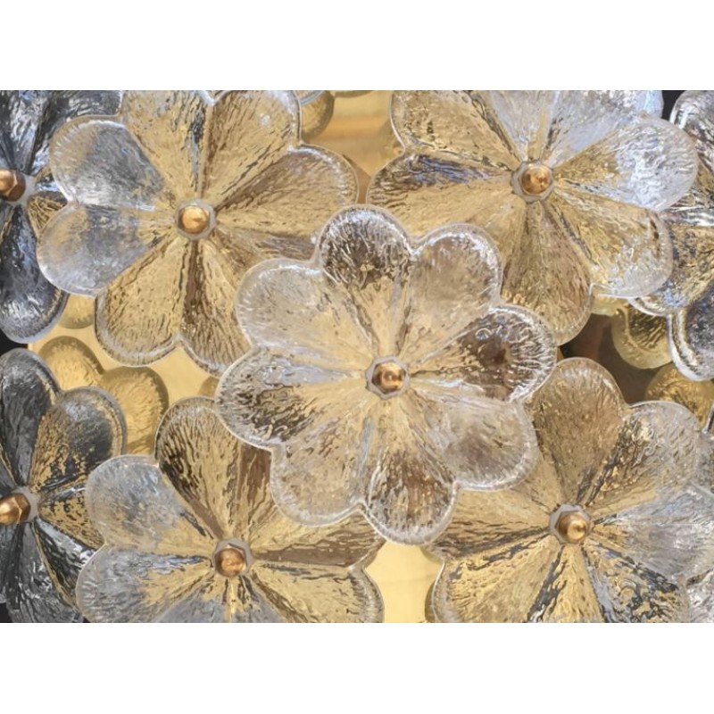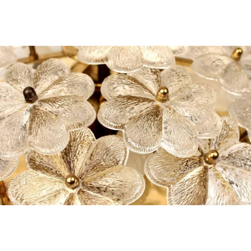 Murano glass flower chandelier in opaline and clear glass, made from antique molds, on a chrome structure. Wired to US standards. At Alan Mizrahi Lighting Design, we supply and manufacture many highly sought after designer pieces. All Chandeliers can be customized by a number of lights, style, color and size to meet your specific needs. Every chandelier can also be combined with a matching table lamp and wall lamp to accomplish the best room design. Our company provides collections that can make all your project dreams come true. The key to an elegant, opulent, bespoke design is understanding the aspirations of the client, the relevance of location and through maximizing the potential of existing elements of the space.