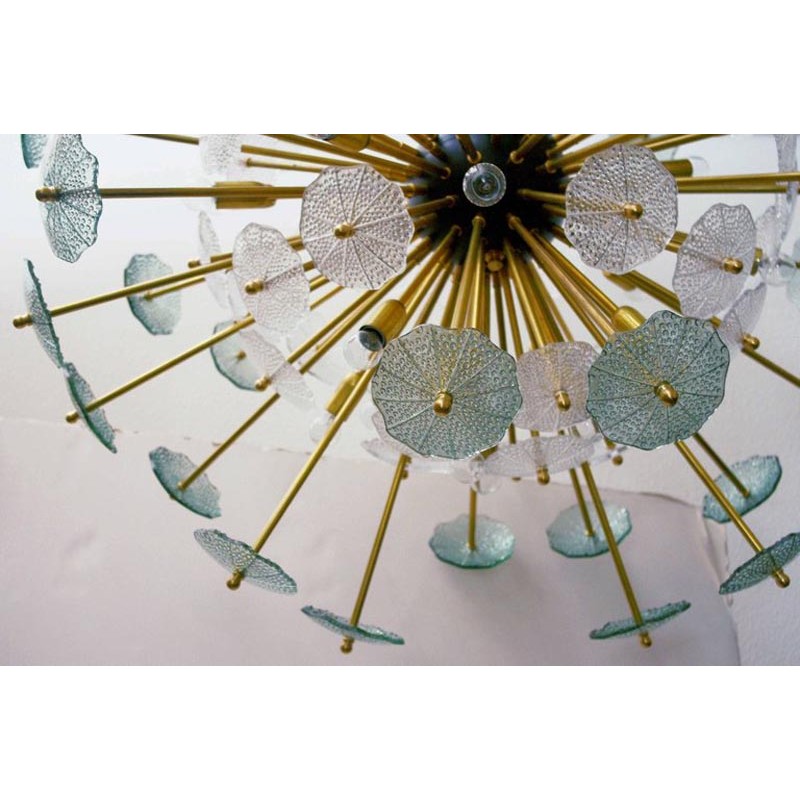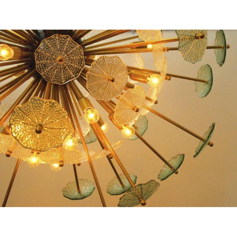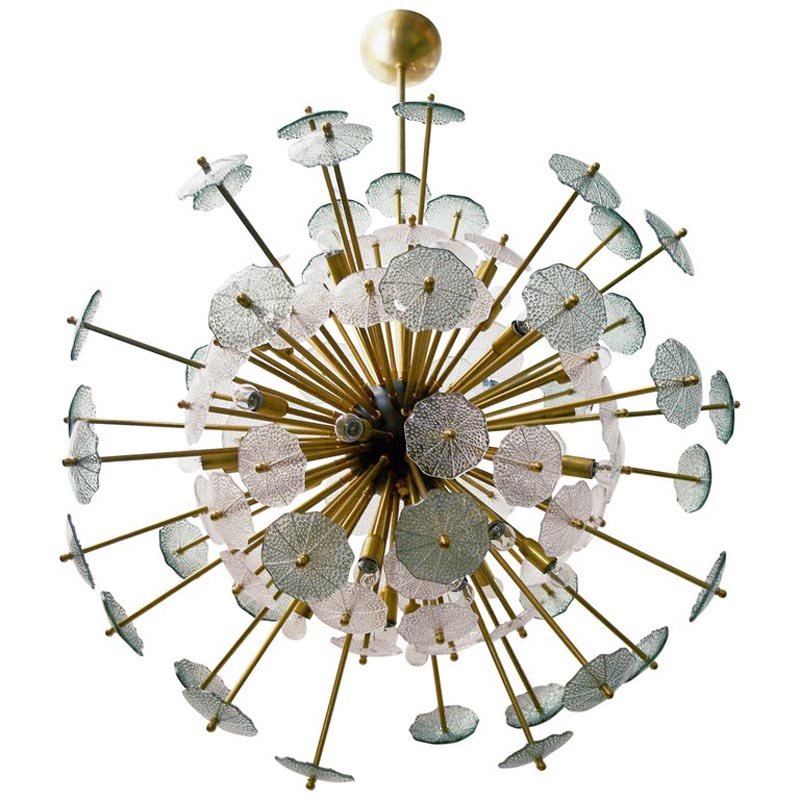 The ultimate collector's item, this vintage-inspired Large Parasol adjustable pendant lamp transforms any space with its character and high style. Italian Sputnik chandelier shown in a clear and smoky green molded Murano glass with bubbles on a lacquered brass frame. A simple yet elegant lighting fixture for your home. The key to an elegant, opulent, bespoke design is understanding the aspirations of the client, the relevance of location, and maximizing the potential of existing elements in the space. Skilled artisans hand-make this round chandelier in brass, covering it with a gold-plated finish or customized in multiple other finishes. All chandeliers can be customized by a number of lights, styles, colors, and sizes to meet your specific needs. It features an array of lights that emanate beautifully through its LED rainbow baguette laser-cut high-quality prisms. In our continuing search for new discoveries, we often come in contact with original designers. That leads up to a continuing expansion of our stock. Still keeping the same goal in mind: to offer a vast choice, unique, decorative and stylish.