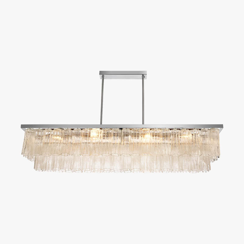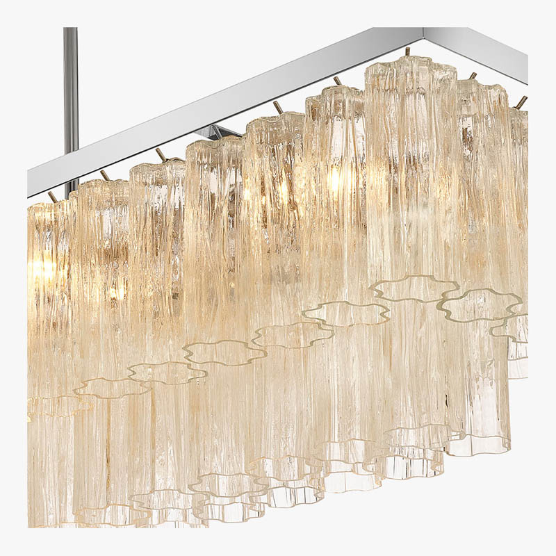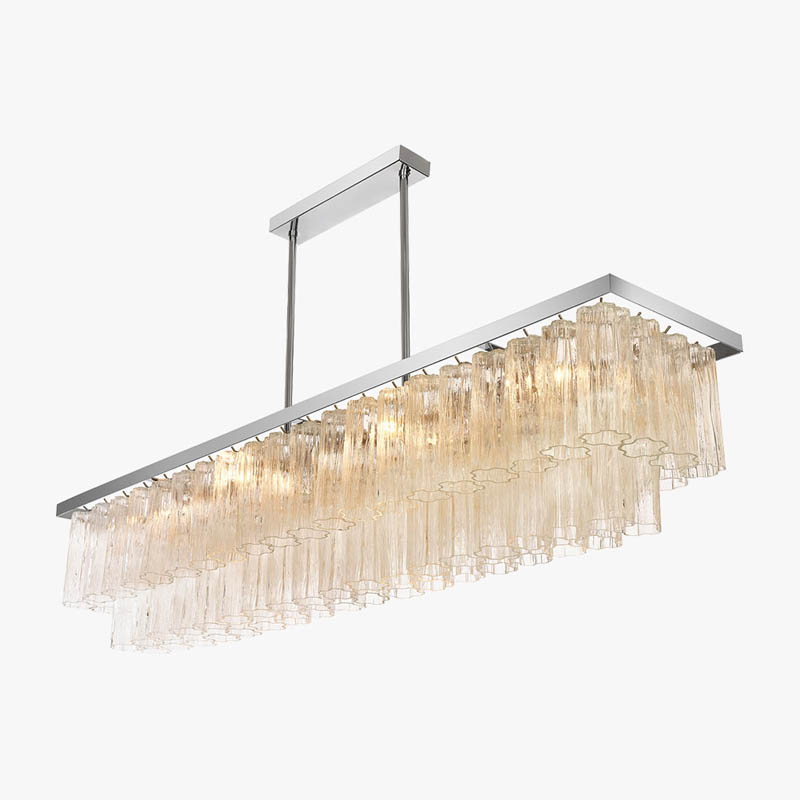 Turning today’s most popular home decor trends into fashionable lighting, Pentagon Rectangular Chandelier features an innovative fusion of solid chunky glass and geometric crossbars in a sophisticated, polished nickel finish. Both modern and clean, this boxy piece is a beauty from all angles. Attract attention, provoke emotion to the imagination with games of light and matter. Such as the ambition and the creative spark of the “Pentagon” style. Since each chandelier is made to order, you can specify the colors and shapes that go into each piece. Every chandelier can also be combined with a matching table lamp and wall lamp to accomplish the best room design. We hope to bring this joy to you and your environment as we ultimately believe that good design should make the world around us a more beautiful and harmonious place to live. Birthed from the distinct design wardrobe of Alan Mizrahi Lighting, this piece promises to deliver only the highest standard in design and materials.