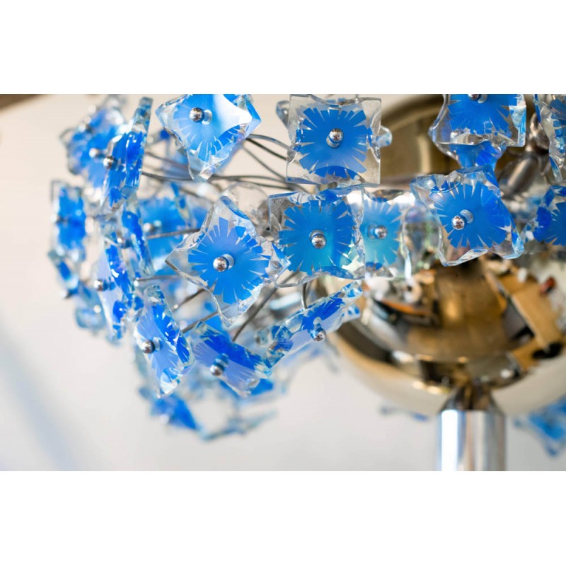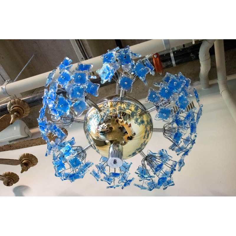 Beyond brightening your abode, chandeliers make a statement in any interior design without occupying valuable floor space. Italian Sputnik styled midcentury chandelier designed by Fontana Arte with blue hand-cut-glass floral clusters, with a brass sphere, chrome cylinder. Uniquely oversized chrome rings at top of the cylinder stand out as an eye catcher in this piece. Lighting products play an important role in any room setting. Hence, you need to make sure that the items you choose will brighten the room while rendering a relaxing and welcoming feel. Skilled artisans handmake this round chandelier in brass, covering it with a gold-plated finish or customized in multiple other finishes. All aspects can be customized- hardware finish, dimension (including dramatic overall heights), and the most current LED illumination options. Birthed from the distinct design wardrobe of Alan Mizrahi Lighting, this piece promises to deliver only the highest standard in design and materials.