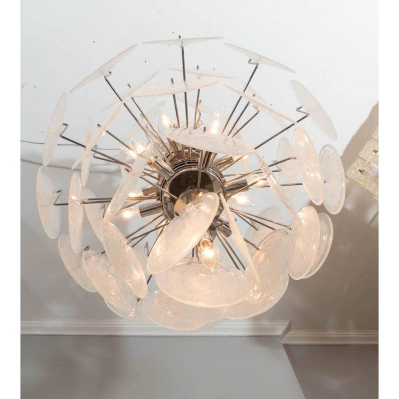 Indulge in your fairytale dreams with this unique and eye-catching clear Pulegoso Disc Chandelier. Each beautiful disc is crafted with much care and precision and flows gorgeously around and down the figure from top to bottom. What makes this piece stand out is its wonderfully balanced shape, vibrant and so full of life. This piece is truly a head-turner with its detailed artwork. It’s available in other mixtures of colors, whatever works best for you! Finally, the lamp is equip with a long cable that is adjustable up to 12 feet to ensure just the right placement of this unique and compliment accompanying fixture. Let this bring the optimum amount of magical charm and contemporary elegance in you seek in a chandelier to be cherished now and forever.