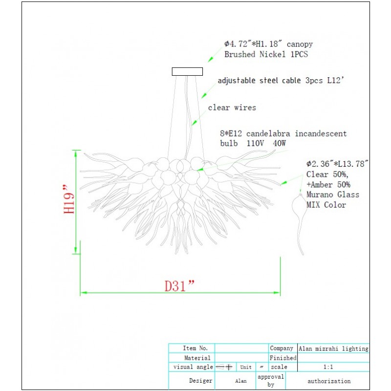 | 31” Diameter x 19” Height (6 Lights) (shown) | $1,810.00 |