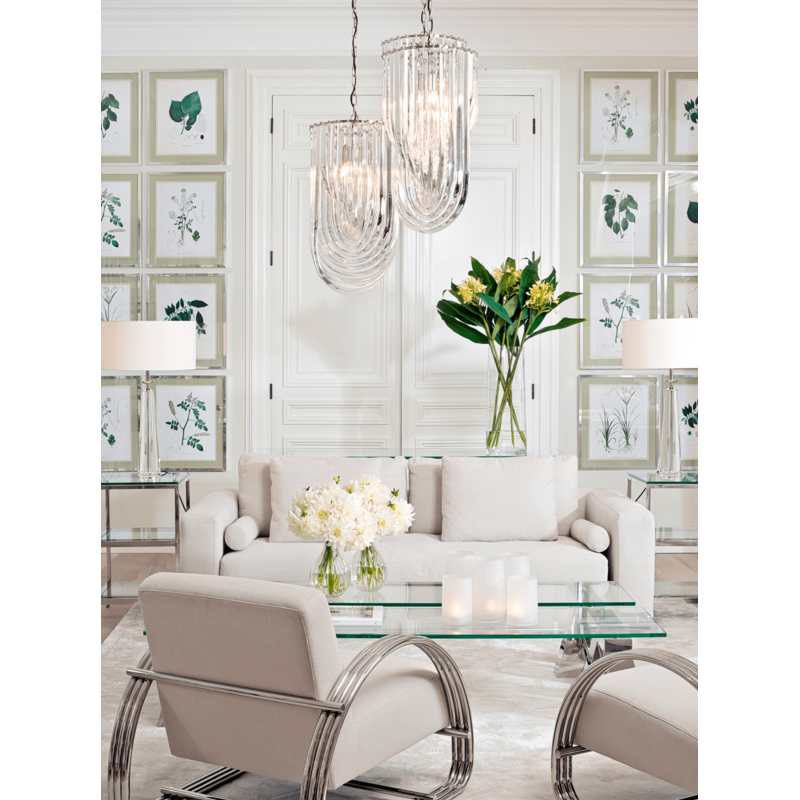 The Eichholtz Murano Chandelier is a contemporary style designed with a series of different length sculptured acrylic tubes. Having created custom chandeliers for over three decades, we specialize in bringing lighting concepts into reality, whether your inspiration comes from a rough sketch, an existing chandelier, our original concepts, or even your own creative imagination. Large or small, our team can meet the challenge. We hope to bring this joy to you and your environment, as we ultimately believe that good design should make the world around us a more beautiful and harmonious place to live.