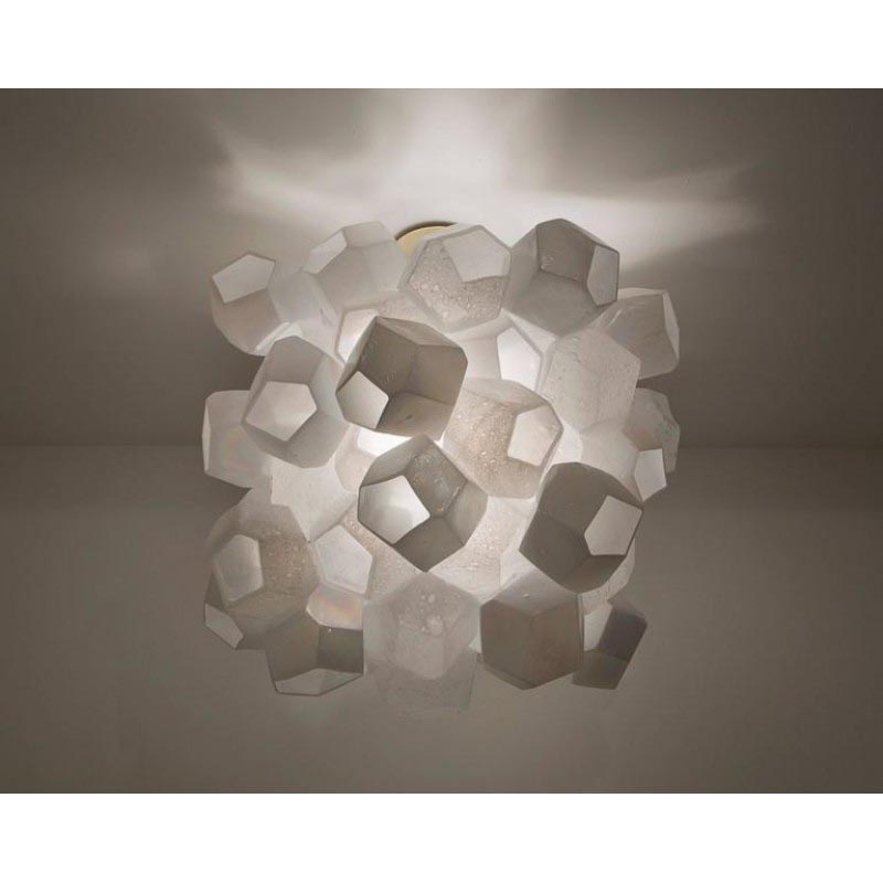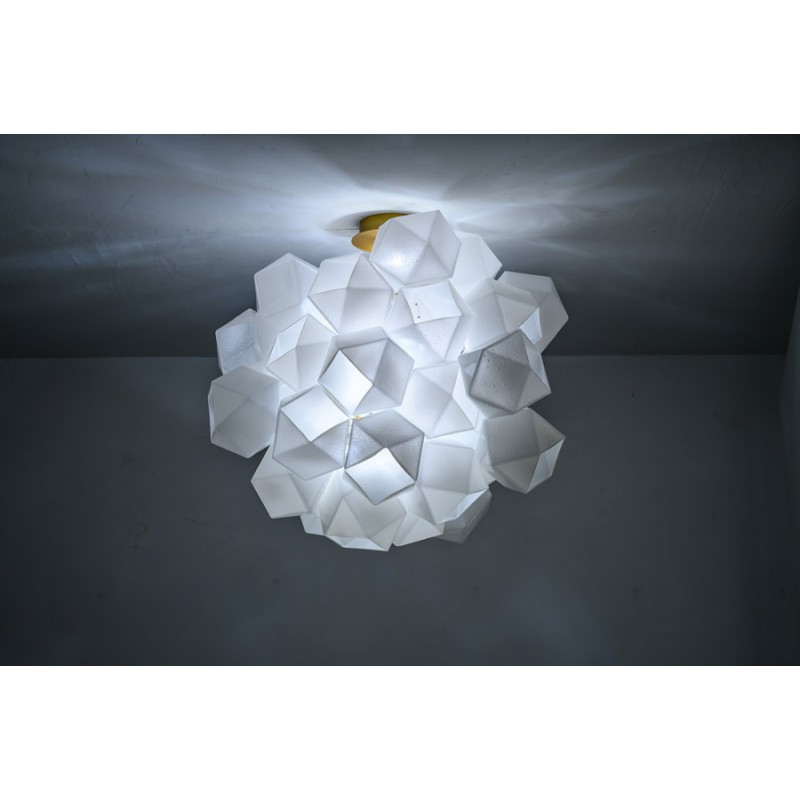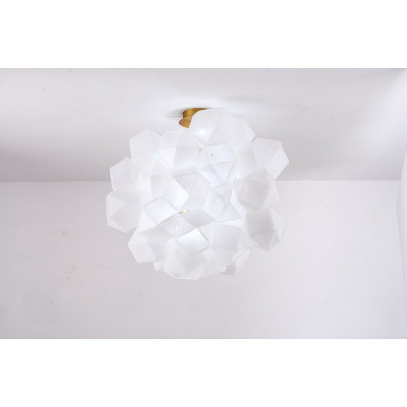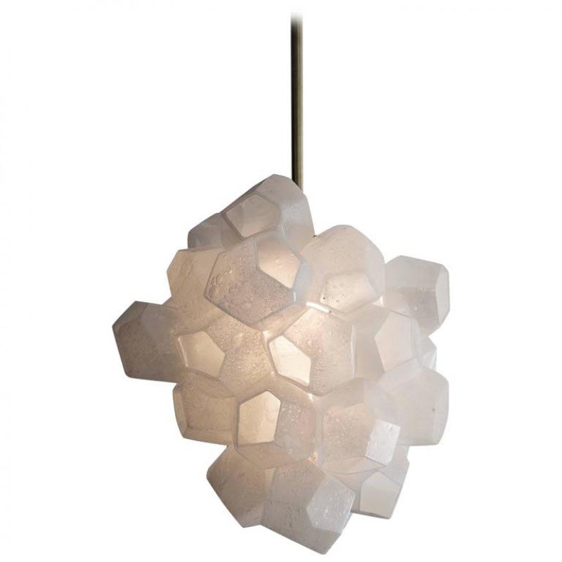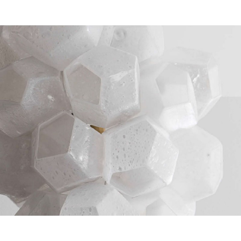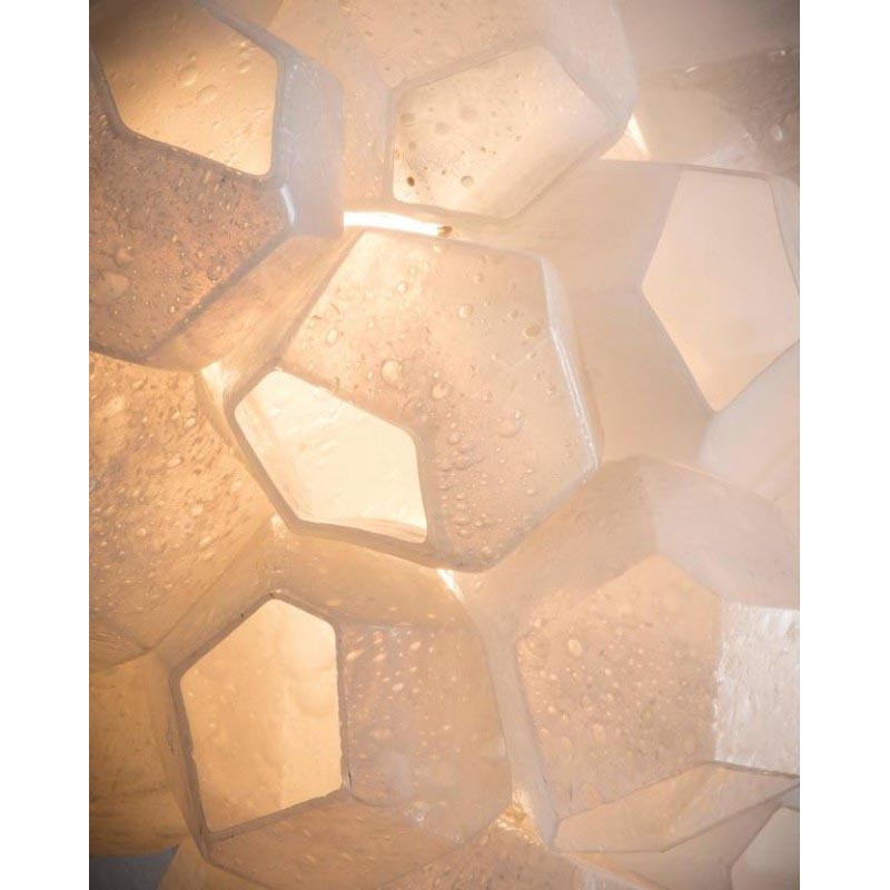 Unique faceted Cluster illuminated sculpture in hand blown white bubble glass. This contemporary blend of art and function results in this light that will shine beautifully in any space it adorns. This hanging light sculpture looks interesting from any angle, and makes nice shadows.At Alan Mizrahi Lighting Design, we especially emphasize exclusive creations, made by designers at home and abroad. No mass products, but one by one characteristic designs that offer you the possibility to add your own unique touch.