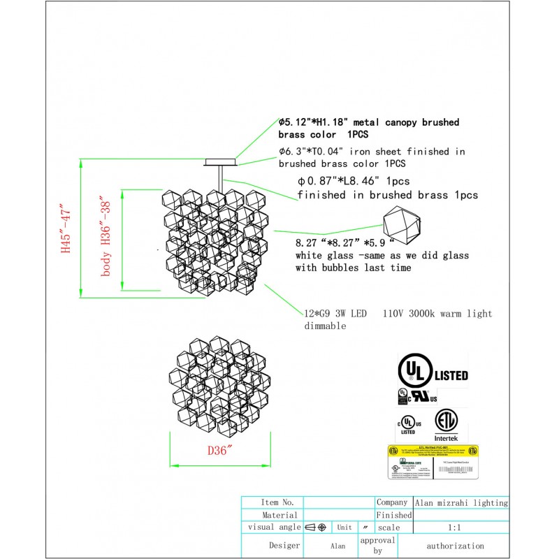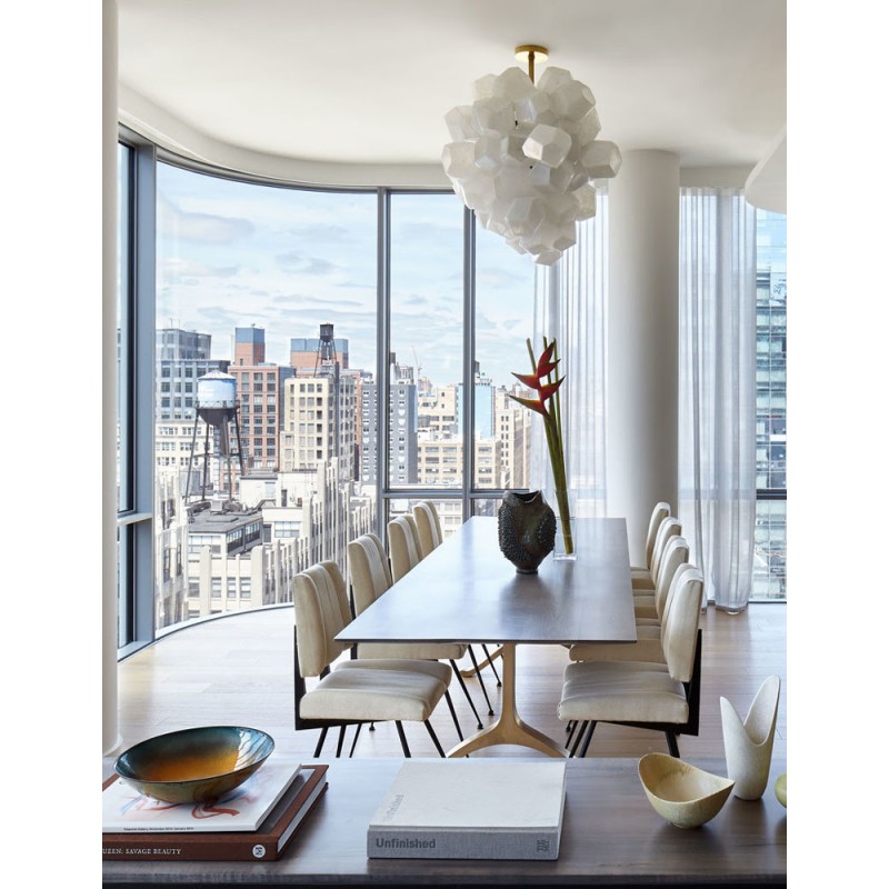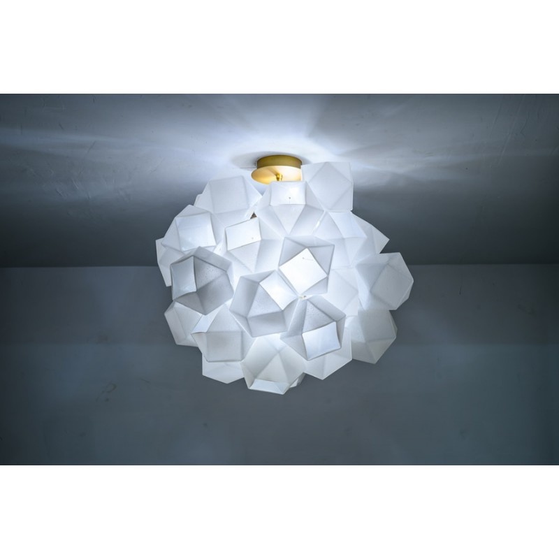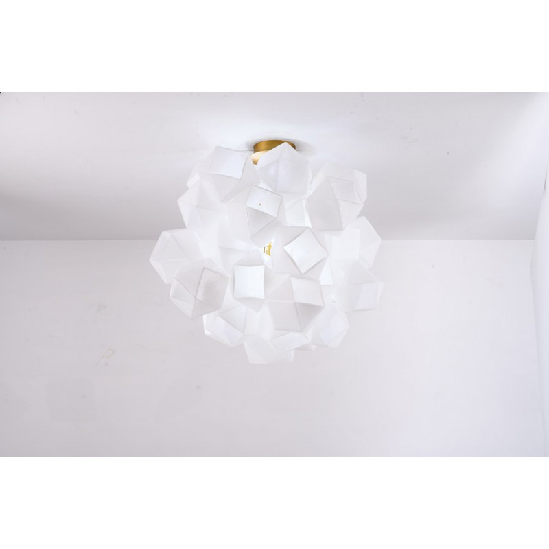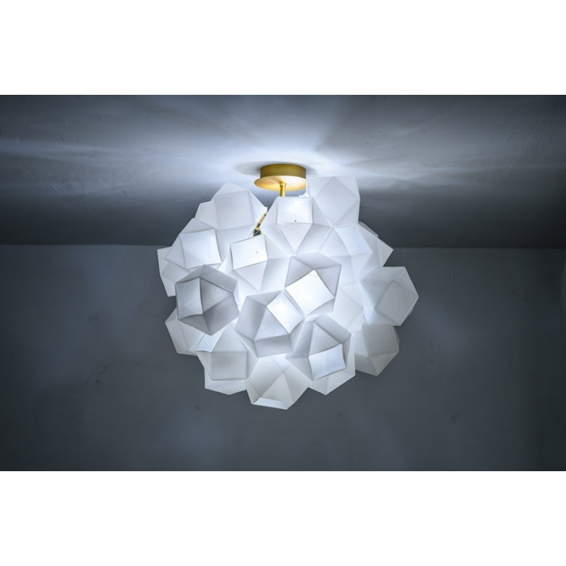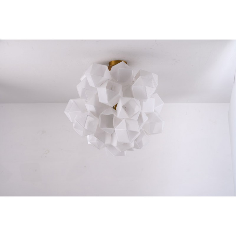 Unique faceted Cluster illuminated sculpture in hand blown white bubble glass. This contemporary blend of art and function results in this light that will shine beautifully in any space it adorns. This hanging light sculpture looks interesting from any angle, and makes nice shadows.At Alan Mizrahi Lighting Design, we especially emphasize exclusive creations, made by designers at home and abroad. No mass products, but one by one characteristic designs that offer you the possibility to add your own unique touch.