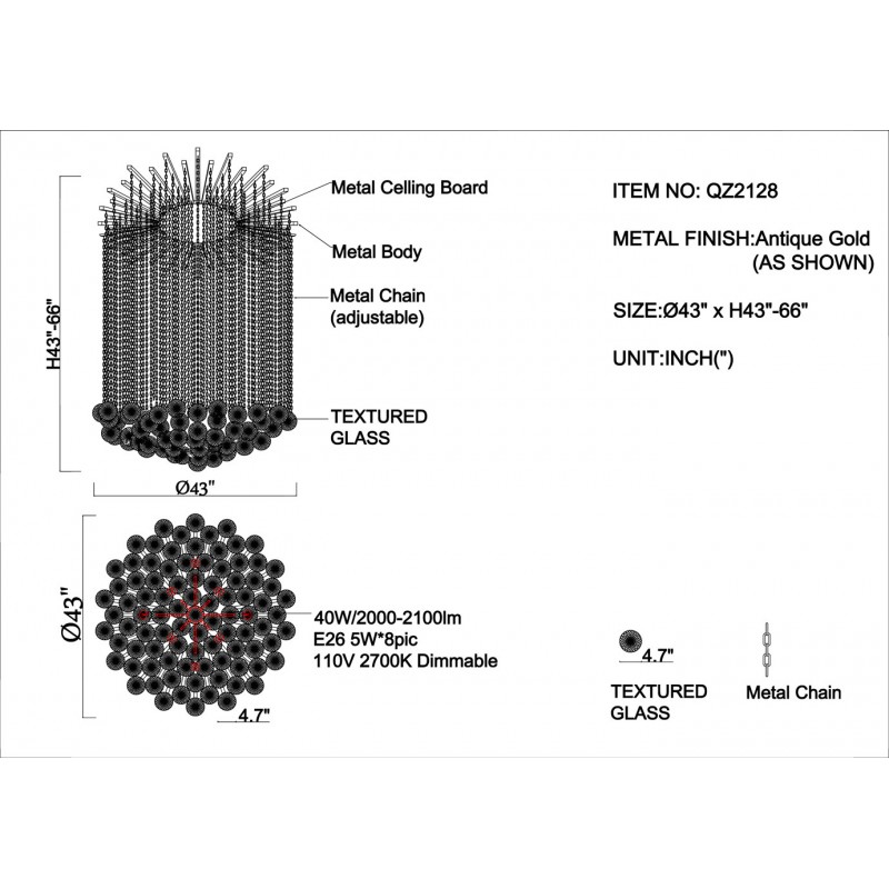 Overall 43" Diameter x 43" Height