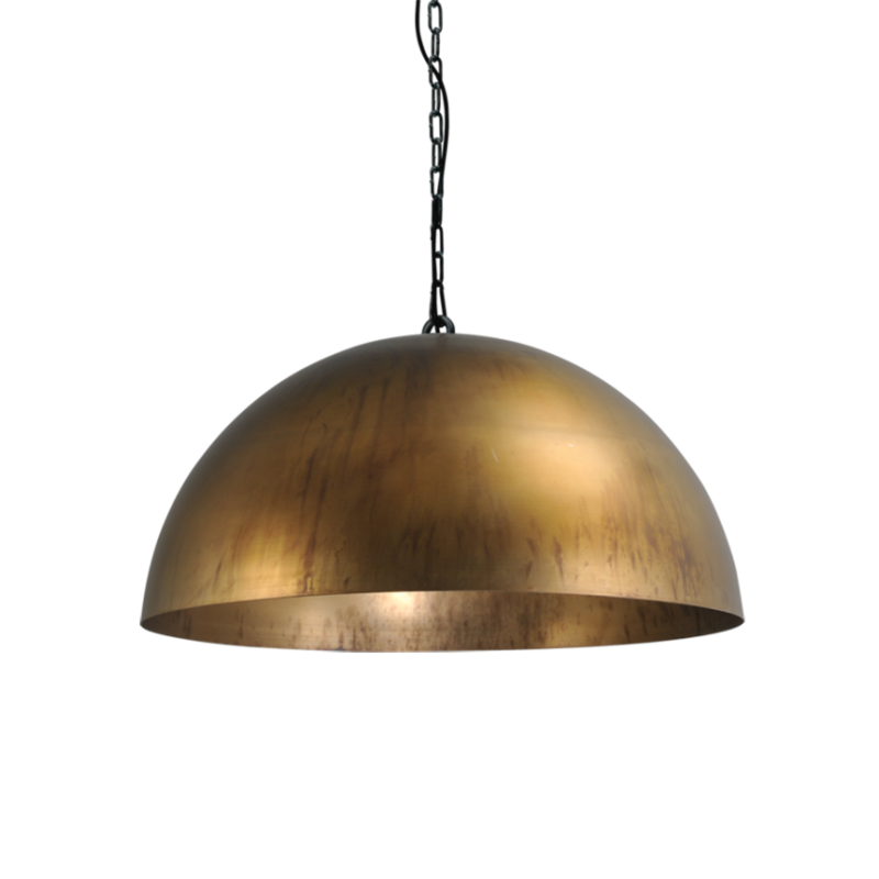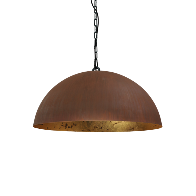 This is a rust finished industrial metal dome pendant in choices of white or gold leaf interior finishes. At Alan Mizrahi Lighting Design, we supply and manufacturer many highly sought after designer pieces.  All Chandelier can be customized by a number of lights, style, color and size to meet your specific needs. Every chandelier can also be combined with a matching table lamp and wall lamp to accomplish the best room design. Our company provides collections that can make all your project dreams come true….
