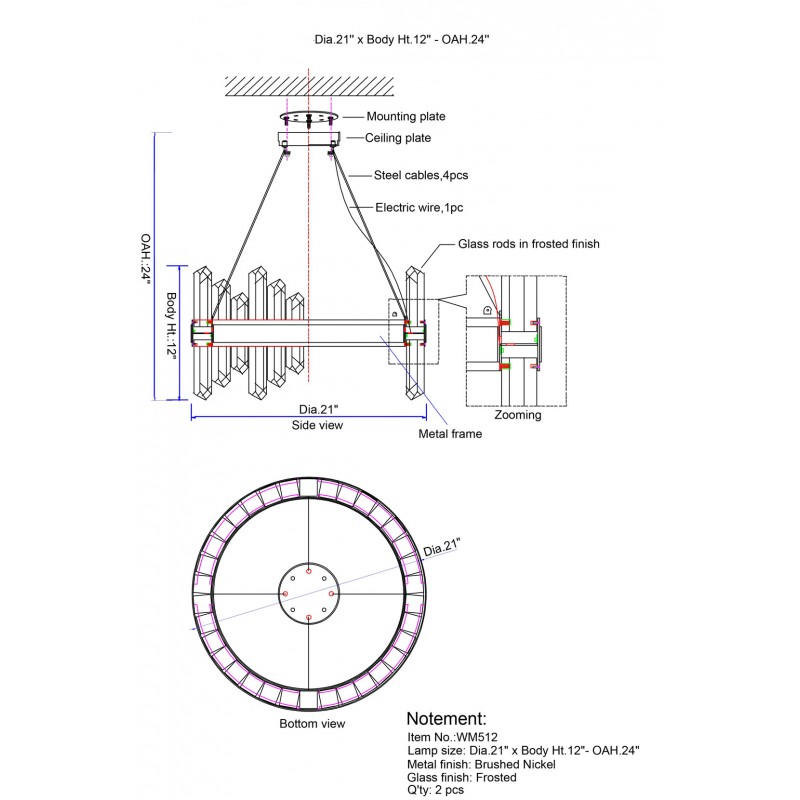 Bulbs: 48 x LED Type, 2.5/3000K Wattage (Not Included)
