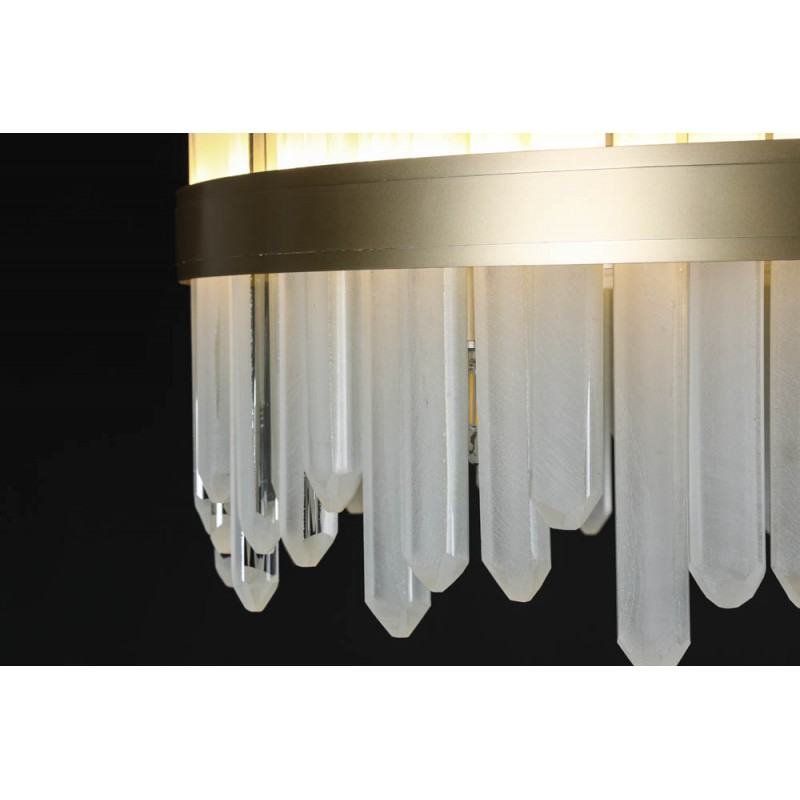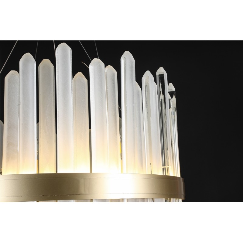 The LIOR PENDANT is a reversible LED pendant influenced by the ephemeral appearance of illuminated rock crystal, which has been interpreted into handmade glass-work with the collaboration of the Fine Art Lamps studio glass master craftsmen. Formed of glass that mimic natural crystal formations as much as they do rays of sunlight, and clean metal lines in unadorned but precious finishes. At Alan Mizrahi Lighting Design, we supply and manufacturer many highly sought after designer pieces. All Chandelier can be customized by a number of lights, style, color and size to meet your specific needs. Every chandelier can also be combined with a matching table lamp and wall lamp to accomplish the best room design. Our company provides collections that can make all your project dreams come true….