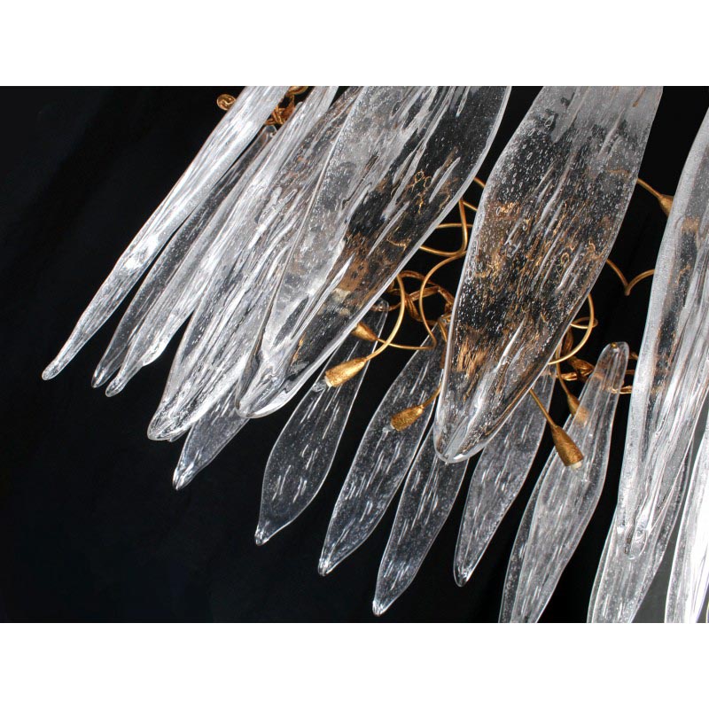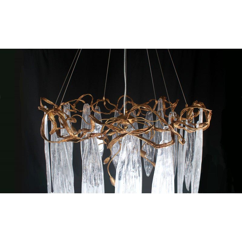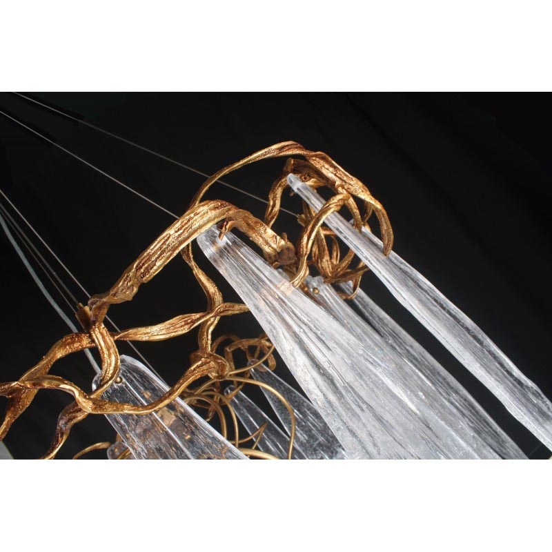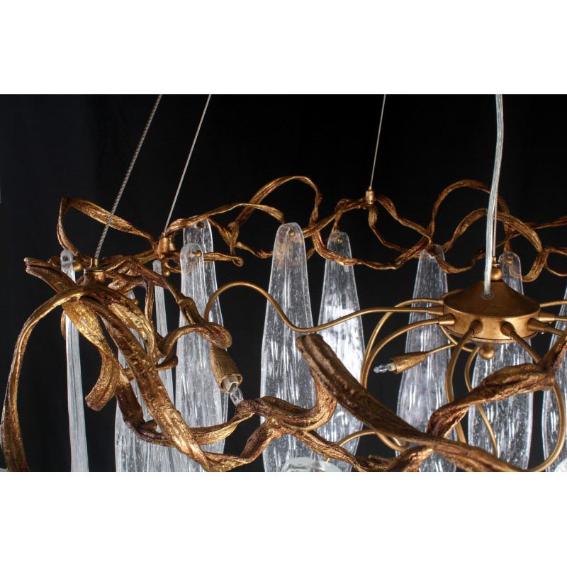Handmade with bronze and hand-blown glass, with a choice of glass colors and metal finishes. This piece can be completely customized to your specifications. Every chandelier can also be combined with a matching table lamp and wall lamp to accomplish the best room design. Recreate a warm atmosphere with a specified sensation to your home and have yourself assisted in the decoration of your project, by our team of interior experts.