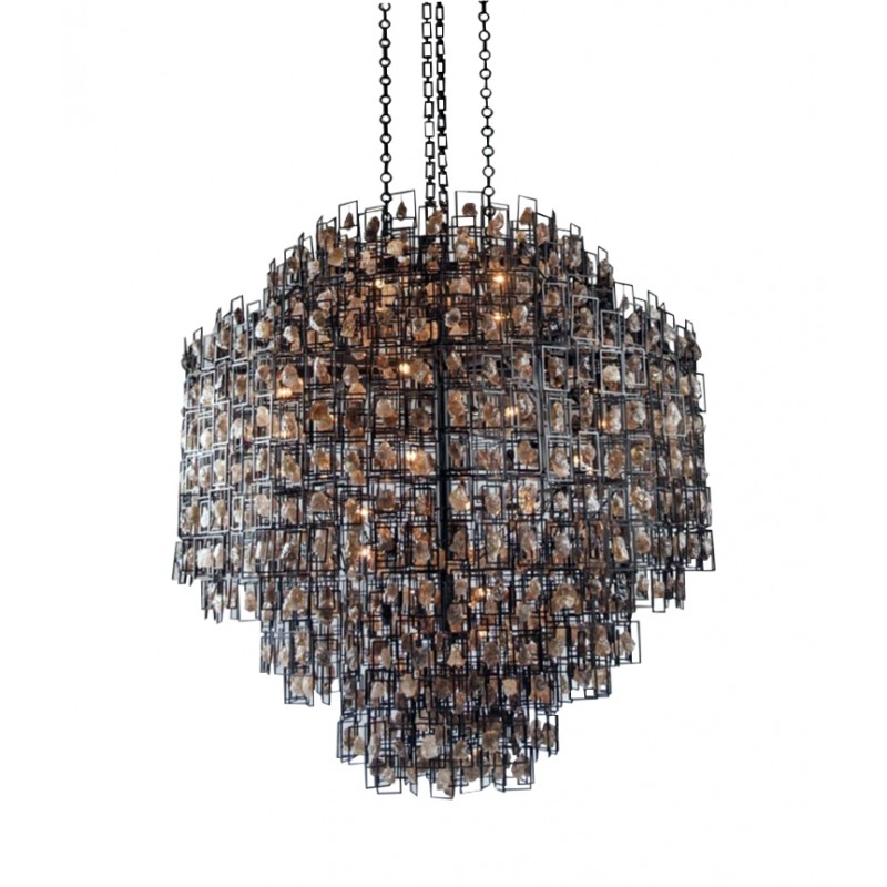 The Petra Bel Air Nero Chandelier is a classic style chandelier. The smokey rock crystals and blackened iron quarts are presented beautifully in this chandelier. Crystal is a beautiful material. It has been with us for centuries and remains one of the most widely used components for chandeliers for its unworldly quality of reflecting light. Having created custom chandeliers for over three decades, we specialize in bringing lighting concepts into reality, whether your inspiration comes from a rough sketch, an existing chandelier, our original concepts, or even your own creative imagination. Large or small, our team can meet the challenge.