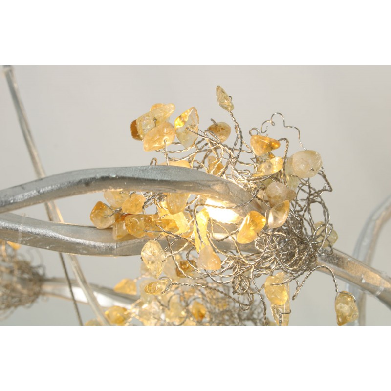 Bring the most festive and unique feel to a room with this Gemstone Chandelier finished in antique pewter with rock crystal that glows with only the utmost romance and glamour possible. It features branches ensuring a wonderful piece designed just to your liking. Its citrine beads balanced beautifully along the piece provide you with a warm and comforting setting for any room or event, as well as endless second glances and compliments for years to come.