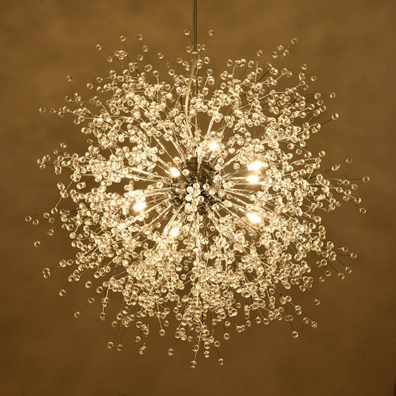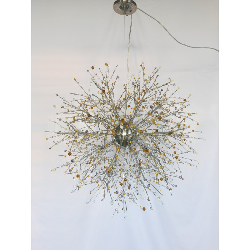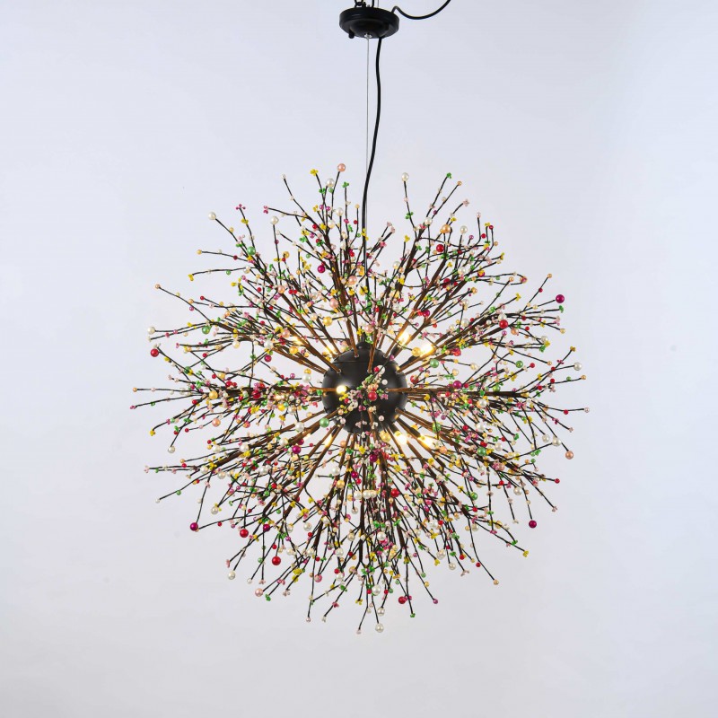 The name dandelion is taken from the French term “dent de lion”, meaning lion’s tooth, referring to the coarsely-toothed leaves. This Modern Dandelion opens to greet the morning and closes in the evening to go to sleep. Inspired by this fact. This wonderful Dandelion suspension lamp peeps through the multitude of clear or multicolored acrylic pearl giving any modern living space a cozy and warm feeling. Combining Acrylic and Stainless Steel. Dandelion modern suspension lamp is designed to discreetly shine into a contemporary home decoration. Because our lighting is made by a workforce that still relies on traditional working methods, each product is unique and carries with it the sensitivity of the artisan. Attract attention, provoke emotion to the imagination with games of light and matter. Such as the ambition and the creative spark of the Dandelion style.