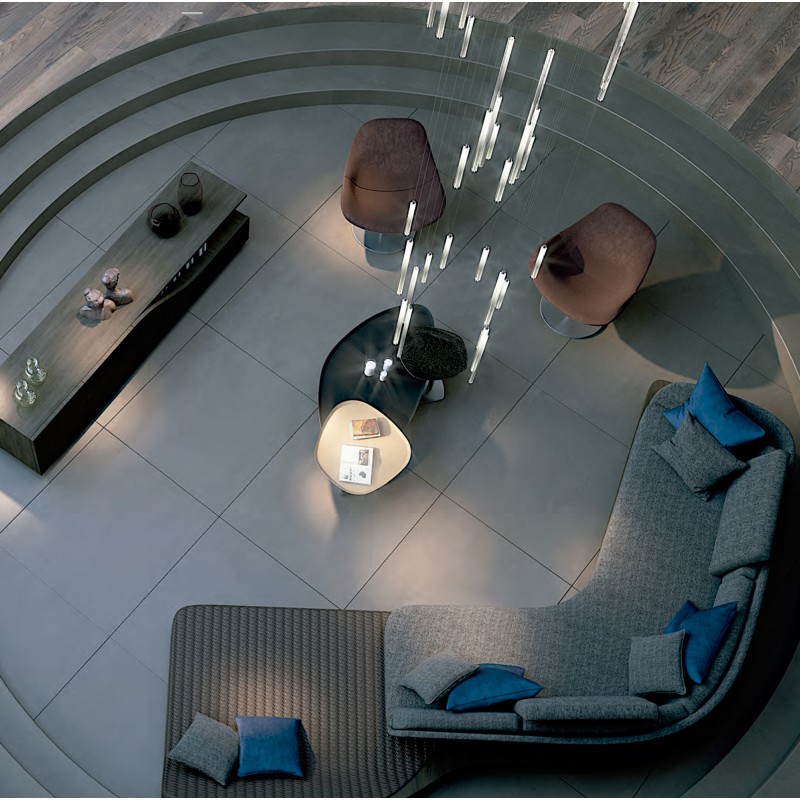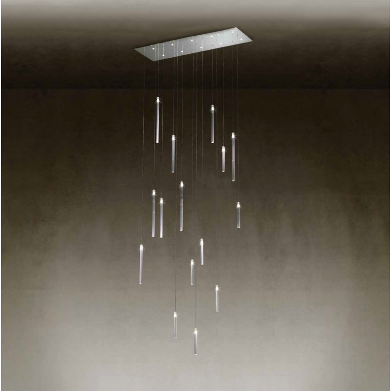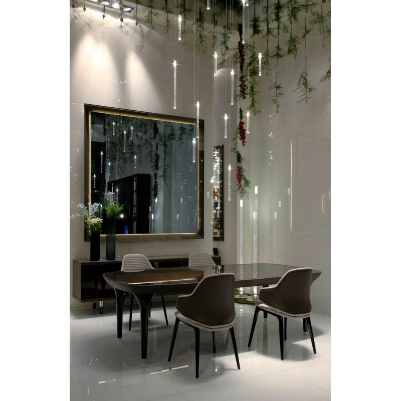 Suspension lamp with mirror glass support. All chandeliers can be customized by a number of lights, style, colors, and sizes to meet your specific needs. At Alan Mizrahi Lighting Design, we especially emphasize exclusive creations, made by designers at home and abroad. No mass products, but one by one characteristic designs that offer you the possibility to add your own unique touch to your interior.