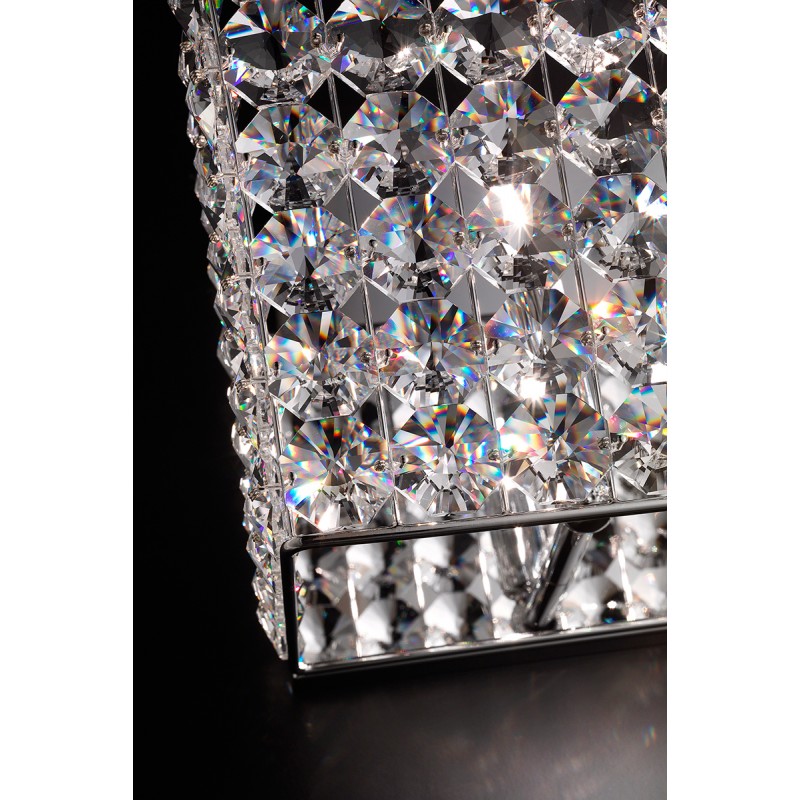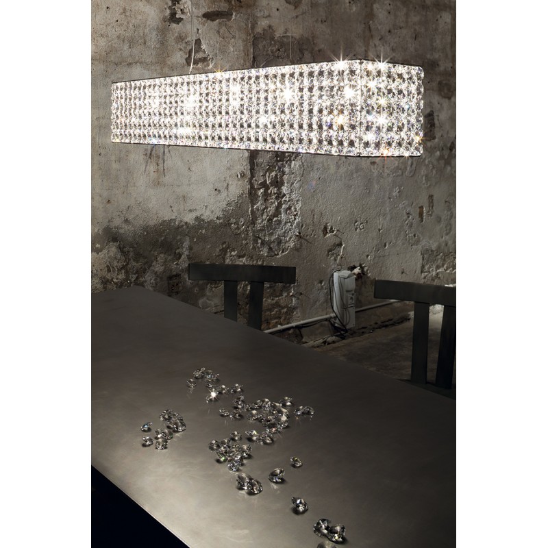 Suspension, wall, floor, and table lamp in chrome-plated metal and crystals. The triumph of High quality crystal for five different concepts of lamp and five possibilities of decorating the space. Chrome-plated or colored metal in various shades and crystals, with the finest crafting, made possible by artisans who represent the highest level of crafting skills, with a lengthy tradition to support them. The precious glass is set with precision and skill into a perfect metal mesh structure, meticulous lacework chiseled like a jewel, starting with simple metal rods. A thousand refractions and infinite reflections to hang, set on a table or fasten to a wall are the brilliant result.