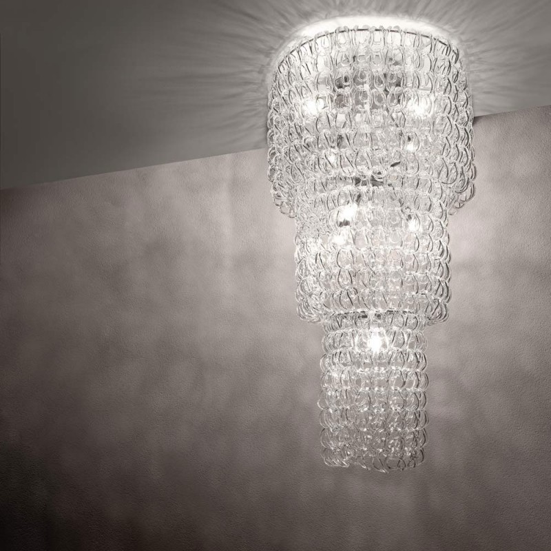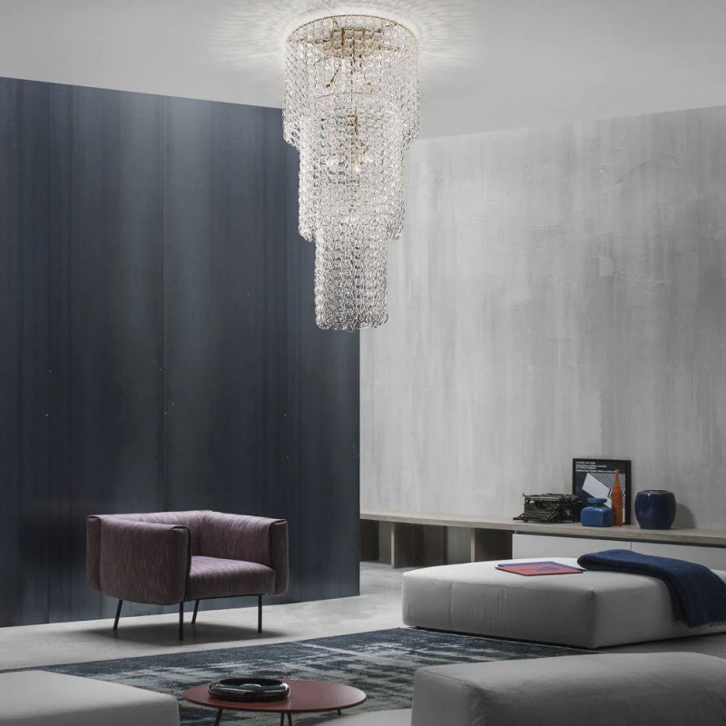 The VISTOSI GIOGALI collection is a decorative lighting system based on a single element: the handmade glass link. Featured cascade chandelier in crystal. Our company provide collections that can make all your project dreams come true. Lighting products play an important role in any room setting.