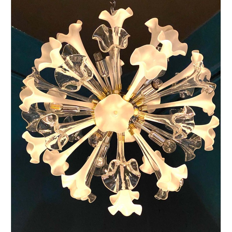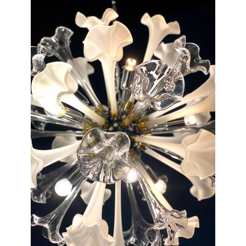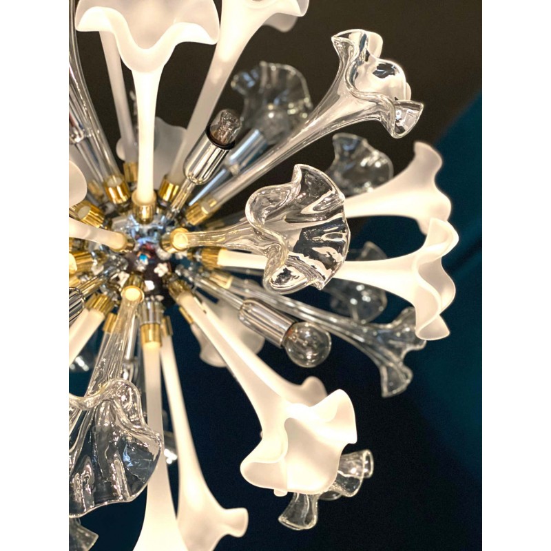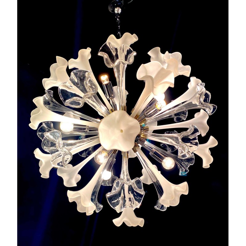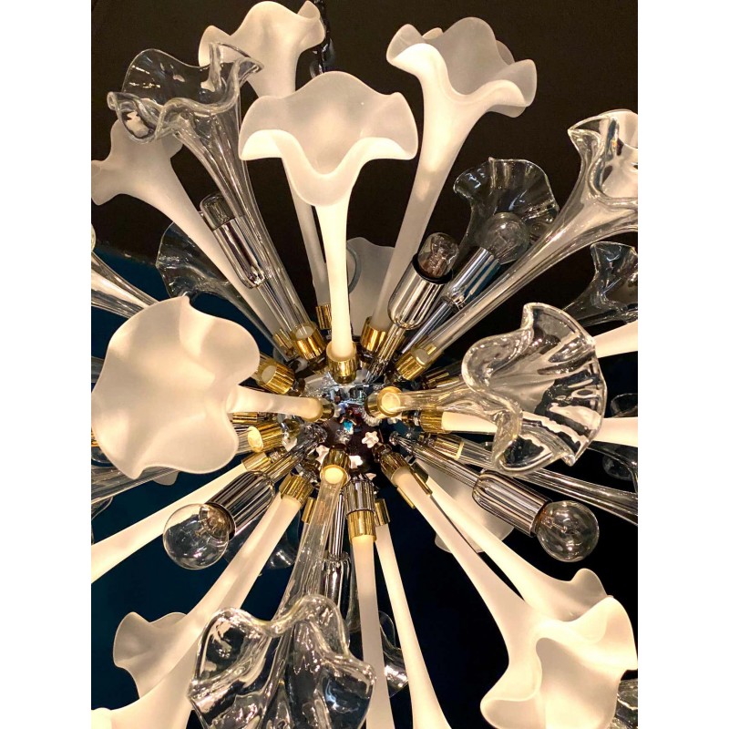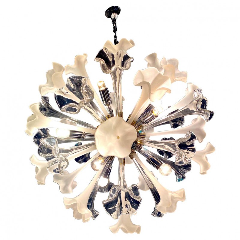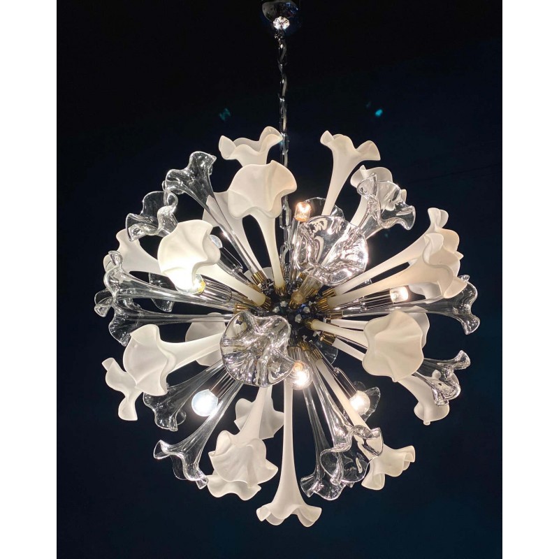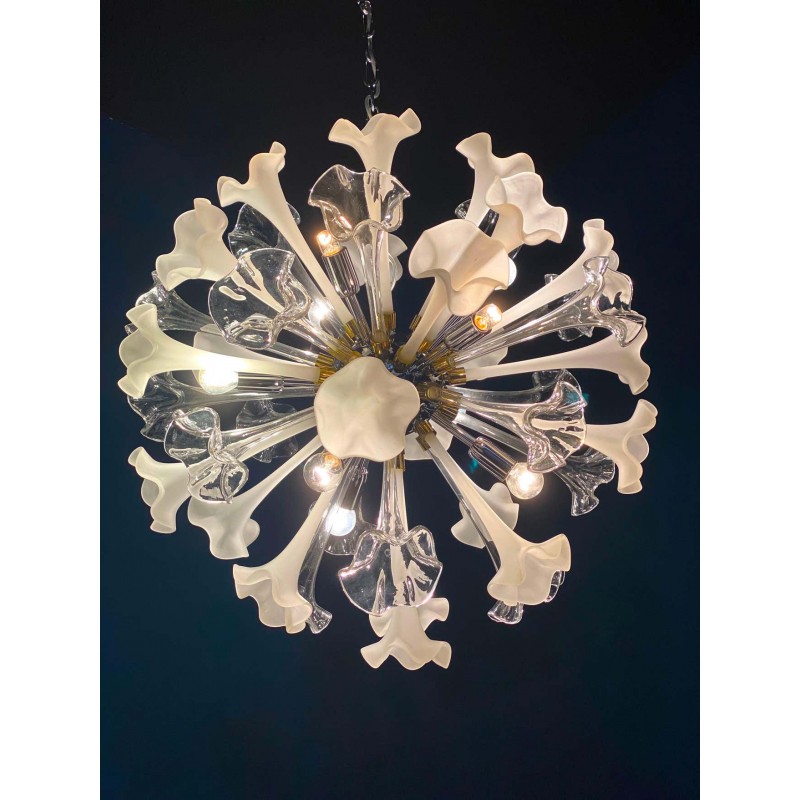 A large contemporary Sputnik chandelier of precious and blown Murano flower art glass. Because our lighting is made by a workforce that still relies on traditional working methods, each product is unique and carries with it the sensitivity of the artisan. Attract attention, provoke emotion, whet the imagination with games of light and matter. Such is the ambition and the creative spark of the existing elements in the space.