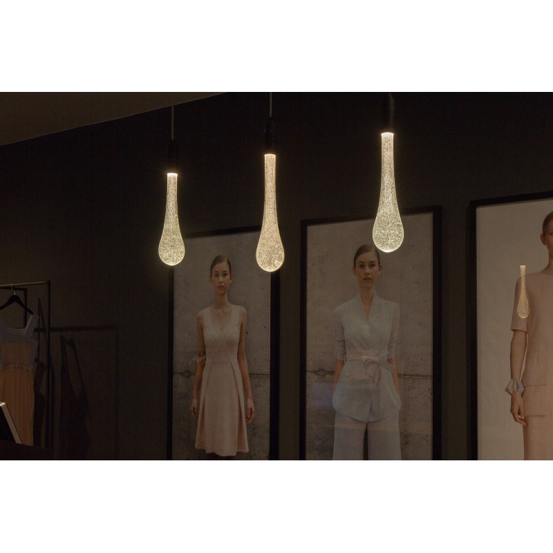 Solid crafted glass drop with Art Deco socket and high-power LED as a decorative pendant light. Well-suited for bathrooms, bars and rooms with high ceilings in period buildings, as a ceiling light in the ceiling rose, or as a cluster of several drops in different sizes. Since the drops are handmade and each piece is unique, the length of the drops varies. The drop length can be shortened upon request. Alan Mizrahi provides interior lighting advice at home. Recreate a warm atmosphere with a specified your own home and have yourself assisted in the decoration of your project, by our team of interior experts. The FLEUVE can easily be transformed to a light installation, creating a visual highlight as a light object on the ground in every room setting. We provide a plastic ring that protects the glass body and keeps it from sliding. Combined with RGBW colour changing led lighting and the variety of colour choice to suit different moods or rooms it becomes a piece of lighting art that offers a multitude of decorative options