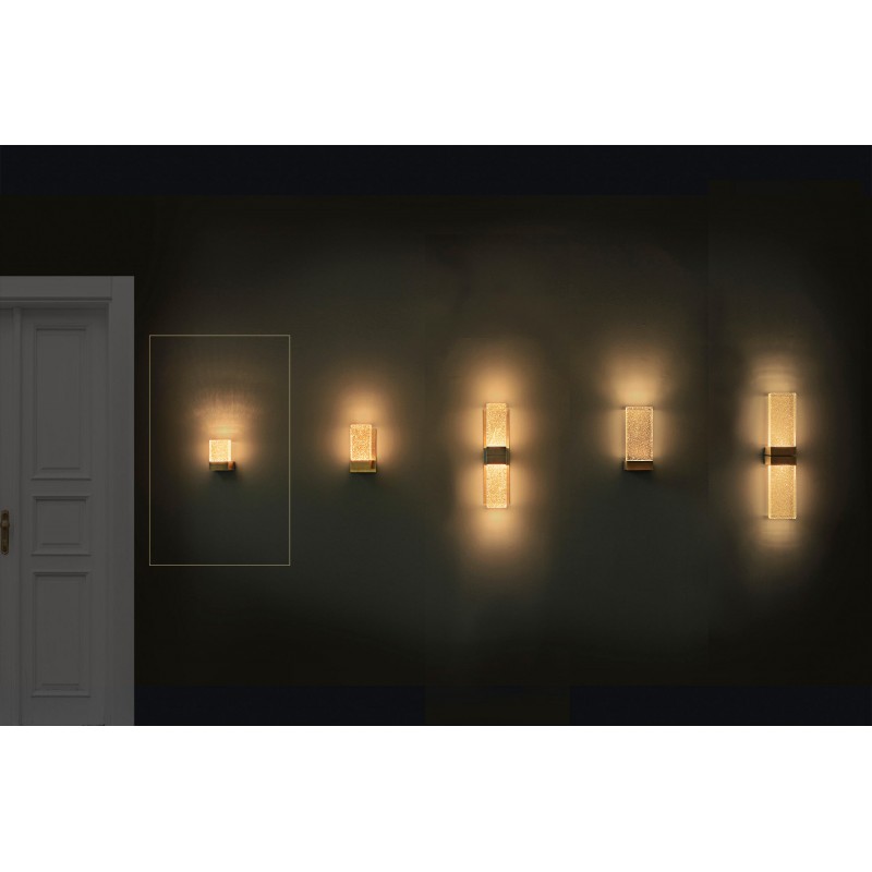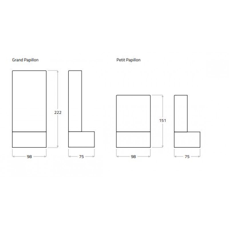 The PETIT PAPILLON wall light is an art object in itself on every wall. The reflection of light on the rear side of the glass beams onto the wall, the edge of the glass is satinated to create a homogeneous light surface on the wall. The timeless design of the PAPILLON wall lights is additionally emphasized by the element of the backplate. The backplate being this "canvas" on which the minimalistic and pure beauty of the PAPILLON wall light design is revealed with all clarity. Through the fine materiality and simple elegance of the new “backplate” the iconic design of the PAPILLON sconce receives an even more distinctive charisma. The light reflections on the wall develop a unique light play that accentuates the classy compactness of the wall light.