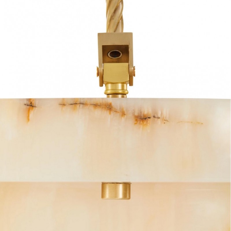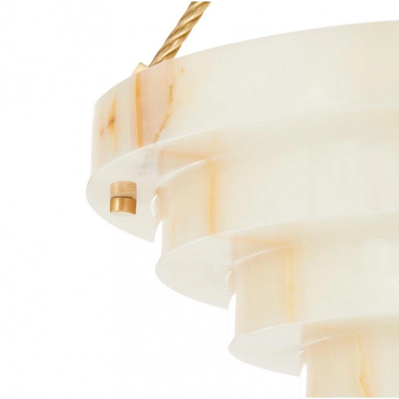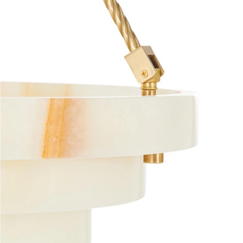 Inspired from a vintage ceiling flush mount, the Belleville Onyx Pendant is constructed in white onyx for an elegant and elevated interpretation for a handing pendant. Designed with the natural veining and brilliance evident in onyx, handcrafted with perfection. Brass finished hardware compliments the beauty of the stone. When illuminated, the magic comes to life, and the soft and gentle light diffused through the onyx. As every piece is unique, there will be colour, patterns, size pits, or colour variations - this is not a fault, simply part of the stone's natural beauty.