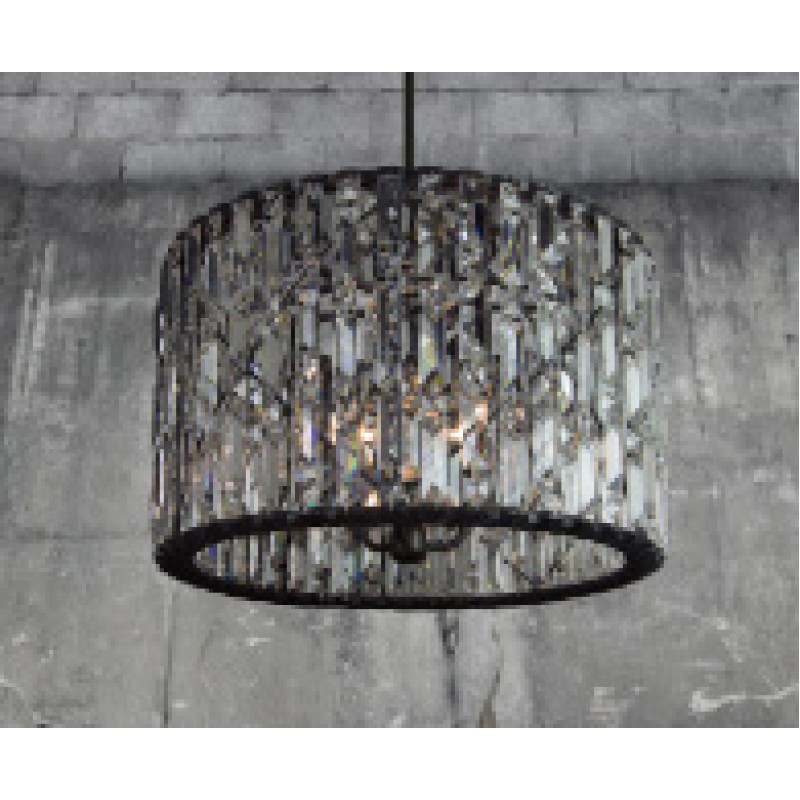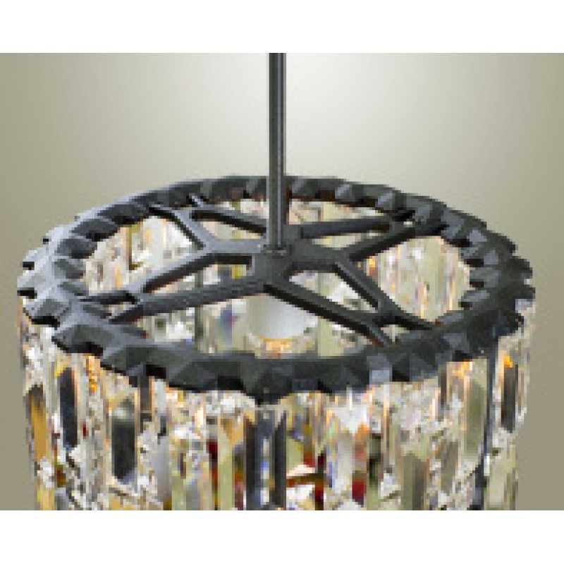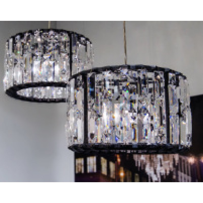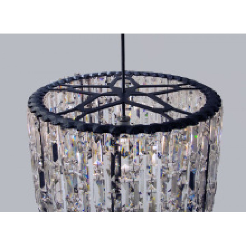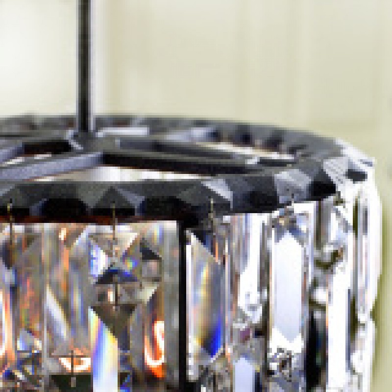 The largest of our Bicycle Gear Pendant Series. This beautiful piece debuted at the High Point Furniture Market in 2014 to gasps of appreciation. The Bicycle Gear Pendant takes advantage of the gears' inner and outer teeth to present an inner and outer row of chains crystal prisms to create a spectacular crystal facade.As with all our 3D Printed Collection, this fixture is made not of metal but of a durable bio-based polyester that is actually printed on a 3D printer. Custom finishes are available.