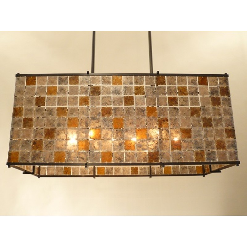 Make a dramatic statement with this industrial-chic “DIANA” chandelier. It's sure to draw attention with its glamorous tiled squares. With each turn of these patterned squares, it brings an exceptional amount of elegance, simplicity, and a very modern feel to any room it is in. This gorgeous head-turner is customizable and you can pick any pattern you'd like at no additional cost. This chandelier is wonderfully suited for a modern living room, but is versatile enough for most settings. In addition, the number of patterns available lends this piece to have an artsy feel as well. All these features and more let this piece give off a light, luxurious, and decadent luminescent glow to be cherished wherever it is placed.