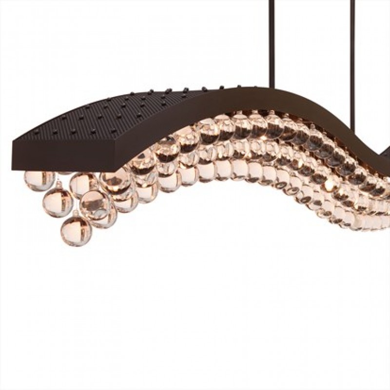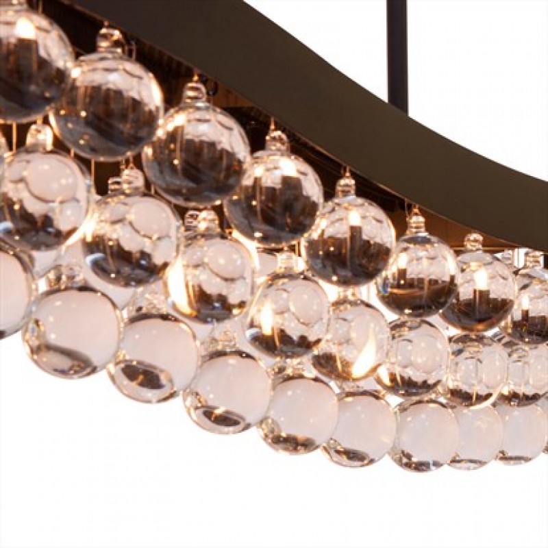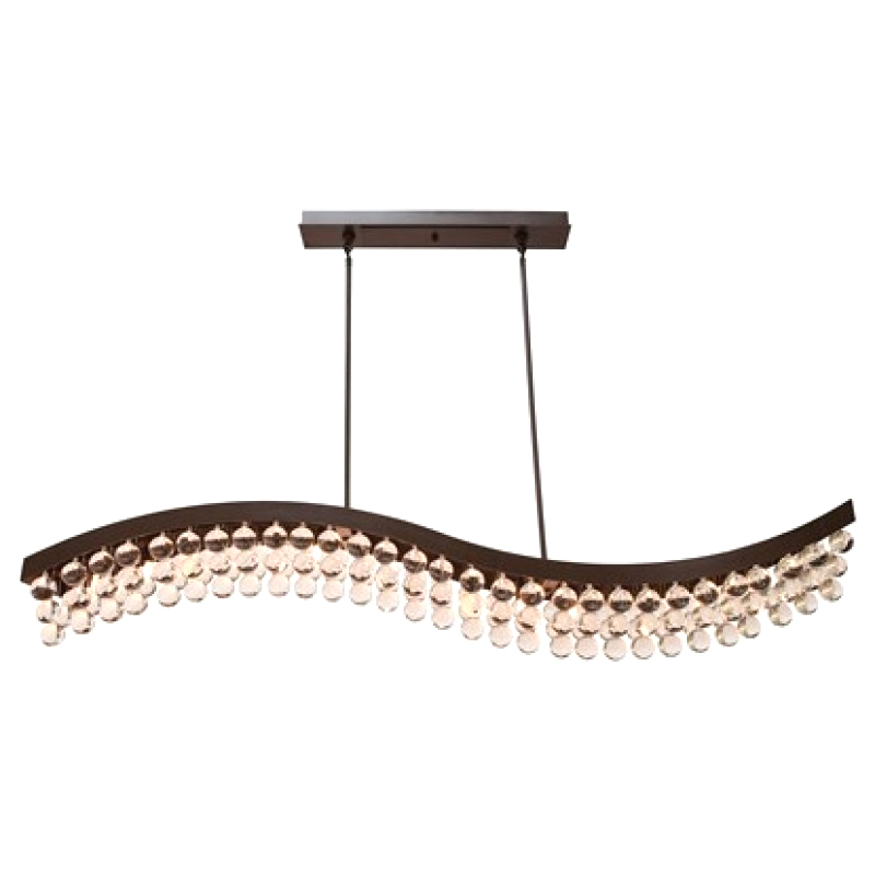Embrace all that is eye-catching, yet subtle, with this crystal raindrops chandelier that features a chic appeal mixed with gorgeous high end luxurious air. It is truly a stunning and timeless piece. It features 4” x 1” clear, smooth high-quality crystal balls that are placed beautifully throughout this fixture. It's a low-key showstopper with its aged iron finish, curved wave shape, and beautifully laid out glass drops that adorn every inch of the piece from top to bottom and is one to cherish for years to come.